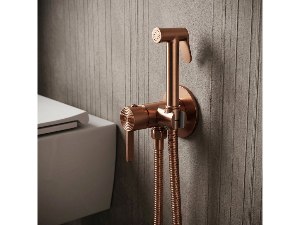 Bidetová baterie bidetta Foster v barvě Brushed Copper je moderní a mimořádně funkční řešení, které přináší nejvyšší standard hygieny do toaletní zóny. Její promyšlená podomítková konstrukce a jedinečné detaily z ní dělají elegantní akcent v moderních uspořádáních.Povrchová úprava Brushed Copper (PVD) – použití pokročilé technologie PVD zaručuje nejen hloubku ušlechtilé barvy, ale také nejvyšší odolnost proti poškrábání, korozi a změně barvy. Kartáčovaný povrch účinně maskuje otisky prstů a skvrny od vody, což usnadňuje udržování bezchybné čistoty.Ozdobná, frézovaná rukojeť – charakteristickým znakem modelu Foster je precizně zpracovaný, soustředný vzor na čele rukojeti baterie. Tento jemný, gravírovaný detail dodává armatuře luxusní charakter.Mosazné tělo a keramická kartuše – pevná základna vyrobená z vysoce kvalitní mosazi a použití keramické kartuše zajišťují plnou těsnost, stabilitu a bezporuchové používání po mnoho let.Podomítková montáž na zeď – systém navržený pro diskrétní instalaci umožňuje skrýt montážní prvky ve zdi. Takové řešení vytváří minimalistický vzhled koupelny a výrazně usnadňuje čištění kolem toaletní mísy. Je to ideální alternativa ke klasickému bidetu, která vám umožní ušetřit místo při zachování plné funkčnosti.Výběrem podomítkové bidetty Foster v barvě Brushed Copper investujete do produktu, který spojuje rafinovaný design se spolehlivou technologií. Použití odolného PVD povlaku a důraz na detaily, jako je zdobená rukojeť, činí z této armatury trvalý a prestižní doplněk každé moderní koupelny.