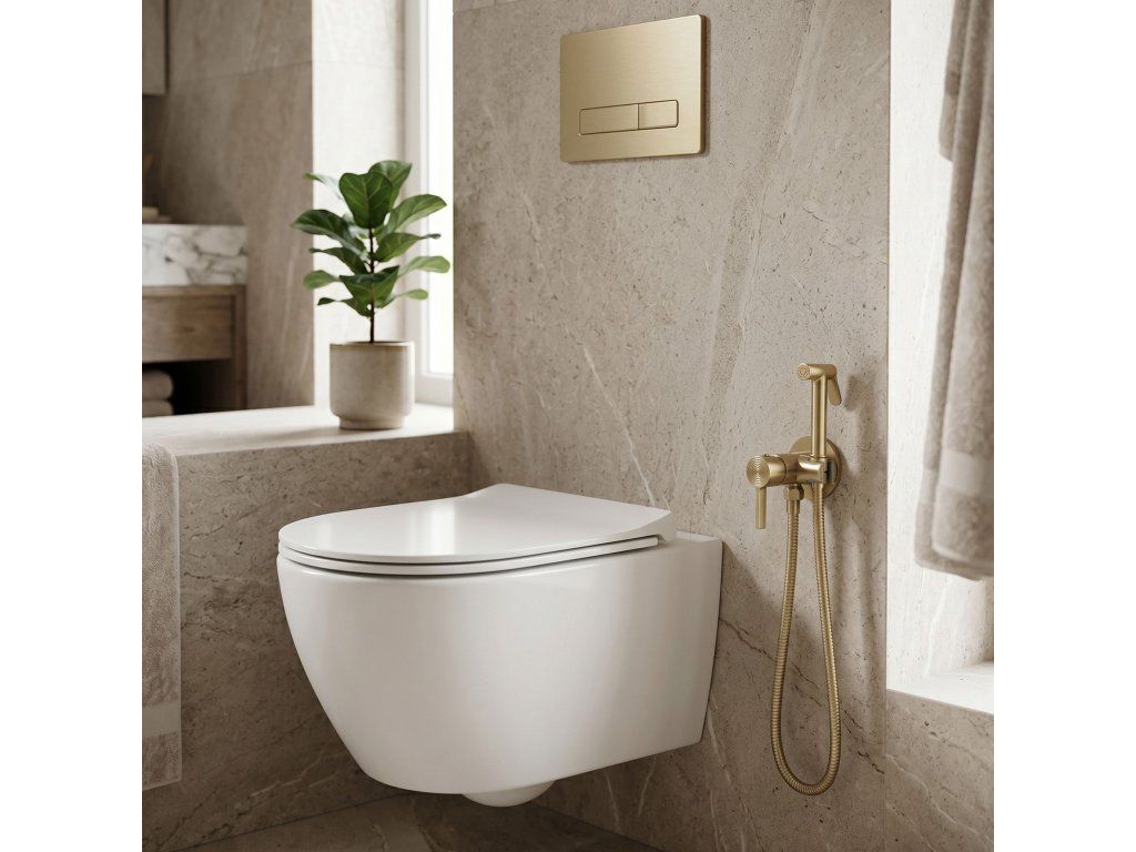 Bidetová baterie bidetta Foster v barvě Brushed Gold je moderní a mimořádně funkční řešení, které přináší nejvyšší standard hygieny do toaletní zóny. Její promyšlená podomítková konstrukce a jedinečné detaily z ní dělají elegantní akcent v moderních uspořádáních.Povrchová úprava Brushed Gold (PVD) – použití pokročilé technologie PVD zaručuje nejen hloubku ušlechtilé barvy, ale také nejvyšší odolnost proti poškrábání, korozi a změně barvy. Kartáčovaný povrch účinně maskuje otisky prstů a skvrny od vody, což usnadňuje udržování bezchybné čistoty.Ozdobná, frézovaná rukojeť – charakteristickým znakem modelu Foster je precizně zpracovaný, soustředný vzor na čele rukojeti baterie. Tento jemný, gravírovaný detail dodává armatuře luxusní charakter.Mosazné tělo a keramická kartuše – pevná základna vyrobená z vysoce kvalitní mosazi a použití keramické kartuše zajišťují plnou těsnost, stabilitu a bezporuchové používání po mnoho let.Podomítková montáž na zeď – systém navržený pro diskrétní instalaci umožňuje skrýt montážní prvky ve zdi. Takové řešení vytváří minimalistický vzhled koupelny a výrazně usnadňuje čištění kolem toaletní mísy. Je to ideální alternativa ke klasickému bidetu, která vám umožní ušetřit místo při zachování plné funkčnosti.Výběrem podomítkové bidetty Foster v barvě Brushed Gold investujete do produktu, který spojuje rafinovaný design se spolehlivou technologií. Použití odolného PVD povlaku a důraz na detaily, jako je zdobená rukojeť, činí z této armatury trvalý a prestižní doplněk každé moderní koupelny.
