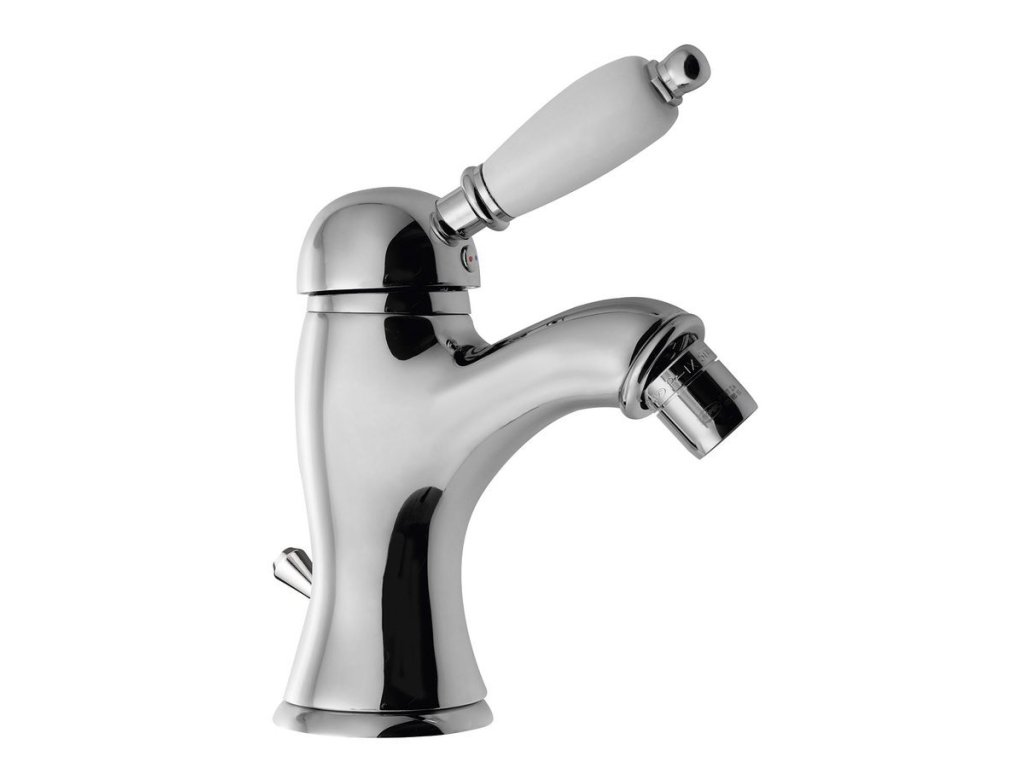 KIRKÉ WHITE stojánková bidetová baterie s výpustí, bílá páčka, chrom