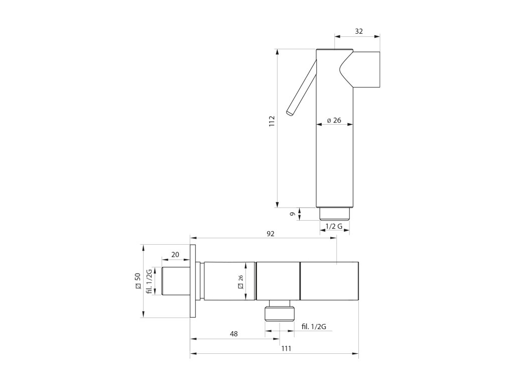 Nástěnný ventil s ruční bidetovou sprškou a bezpečnostní pojistkou,hranatý,černá mat