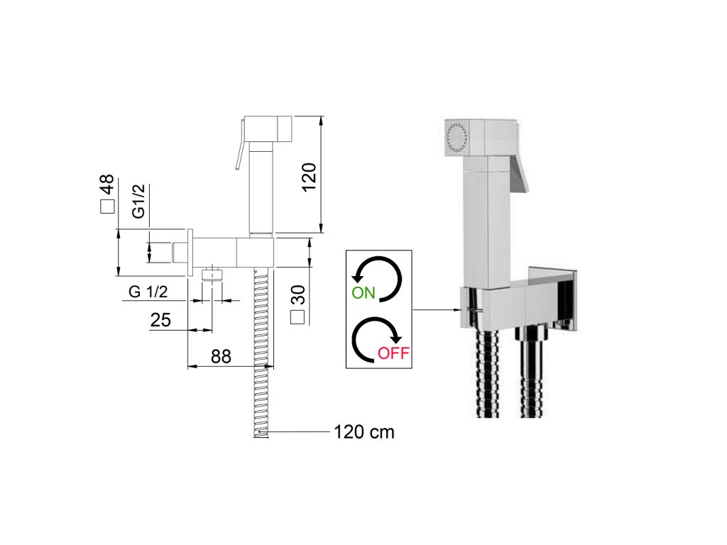 Nástěnný ventil s ruční bidetovou sprškou a bezpečnostní pojistkou,hranatý,chrom
