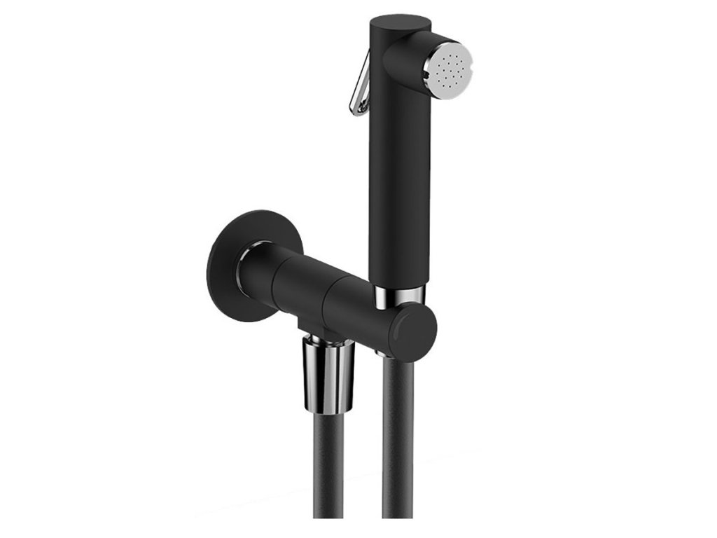 Nástěnný ventil s ruční bidetovou sprškou a bezpečnostní pojistkou,kulatý,černá mat