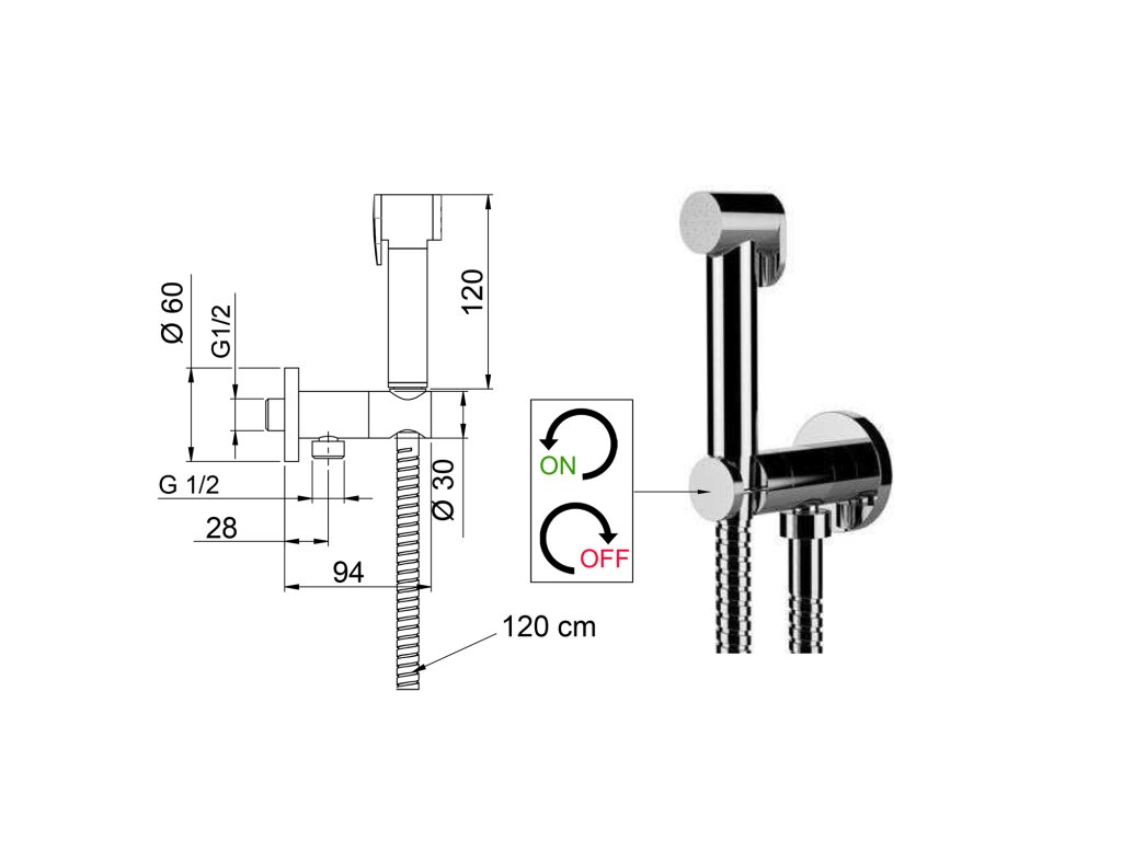 Nástěnný ventil s ruční bidetovou sprškou a bezpečnostní pojistkou,kulatý,chrom