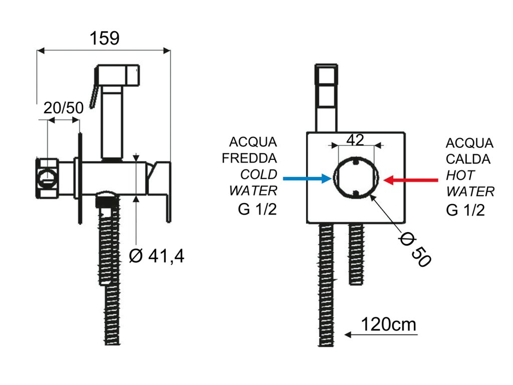 Podomítková bidetová baterie se Stop sprškou, hranatá, chrom