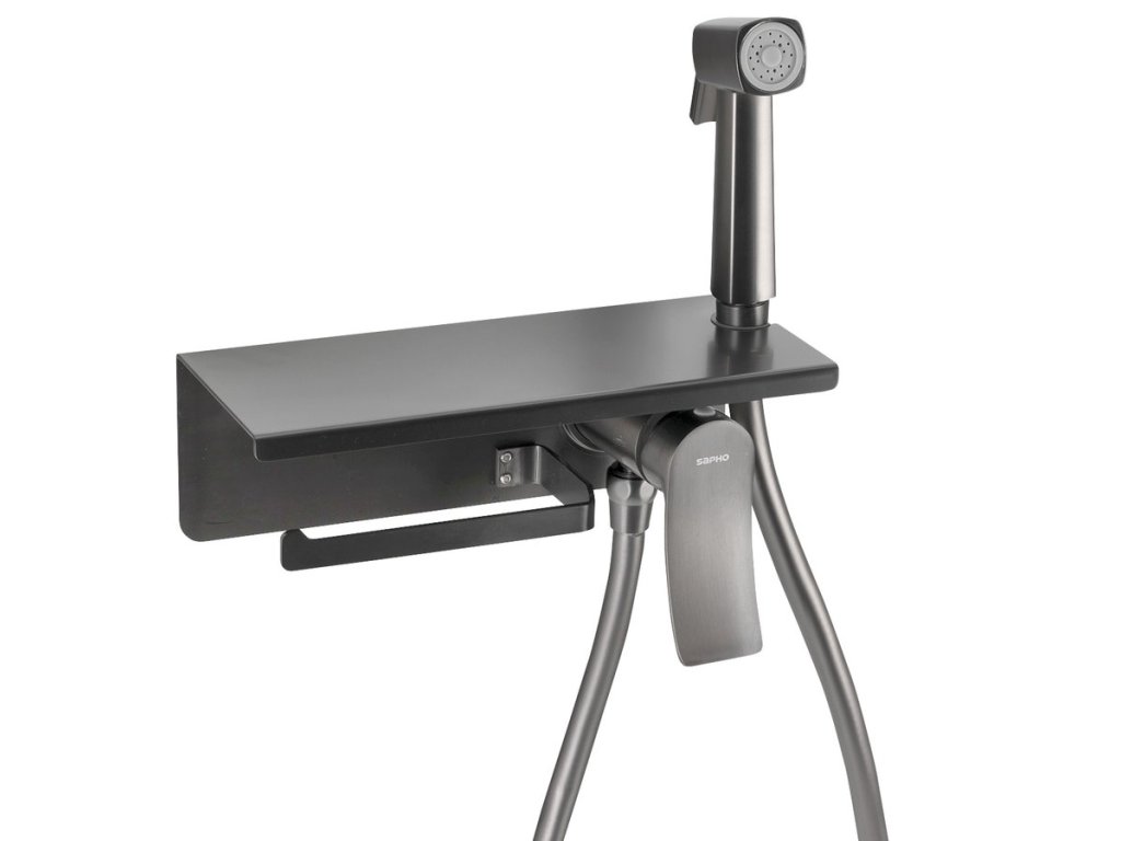 Podomítková bidetová baterie se Stop sprškou a držákem toaletního papíru, gun metal