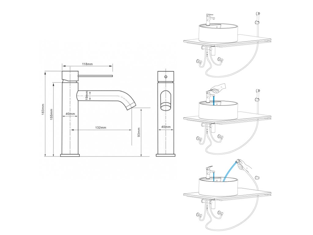 RHAPSODY stojánková umyvadlová baterie s bidetovou sprchou, černá