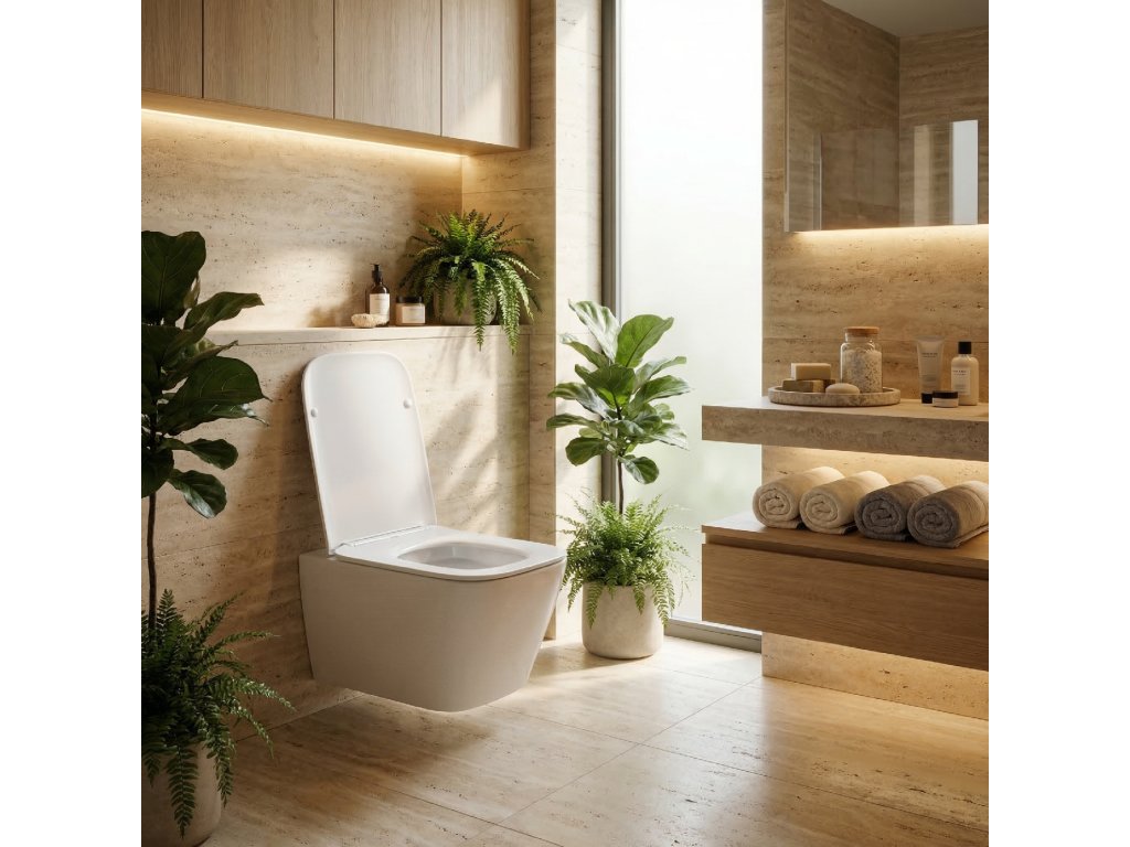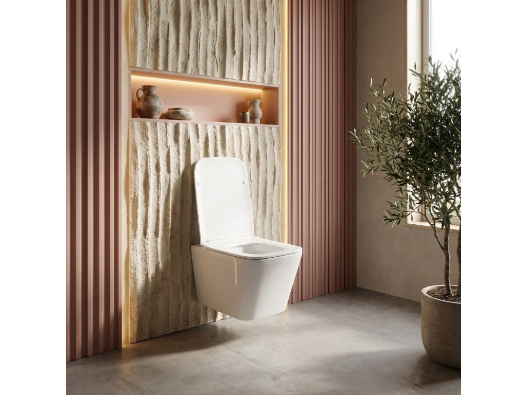 Vysoce kvalitní sanitární keramika zajišťuje odolnost a pohodlí při každodenním používání. Další výhodou je systém Rimless, který usnadňuje údržbu čistoty, zlepšuje hygienu a činí péči o mísu ještě jednodušší.