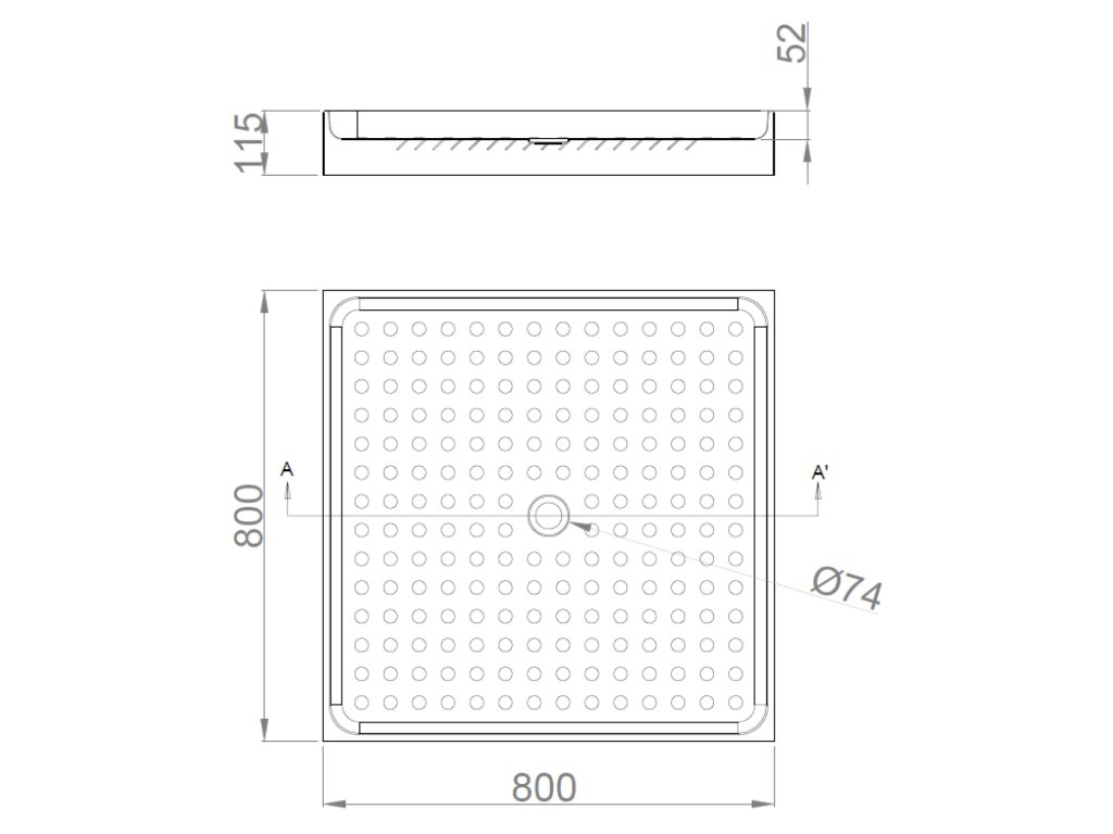 Nerezová sprchová vanička hluboká, čtverec 80x80x11,5cm, mat