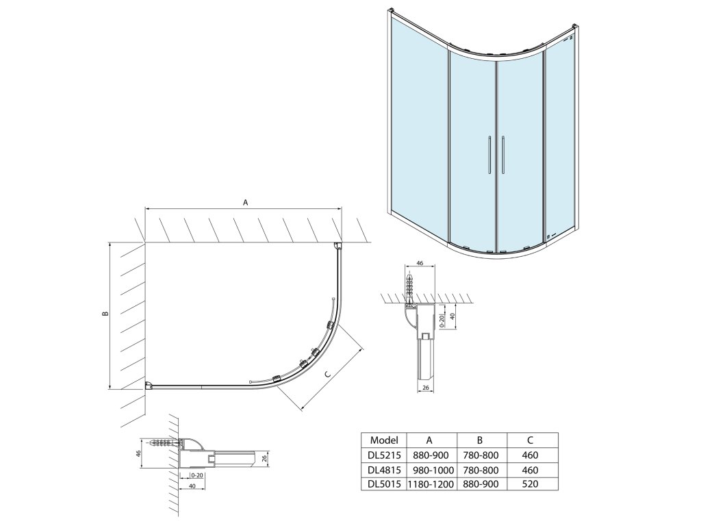 LUCIS LINE čtvrtkruhová sprchová zástěna 1200x900mm, L/R