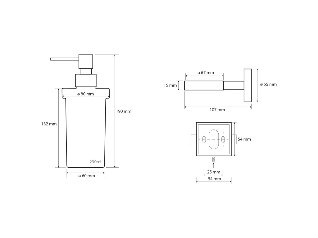 PIRENEI dávkovač mýdla 110 ml, mléčné sklo, černá mat