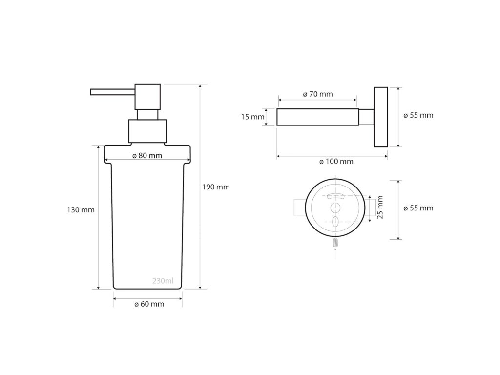 PIRENEI dávkovač mýdla 110 ml, mléčné sklo, černá mat