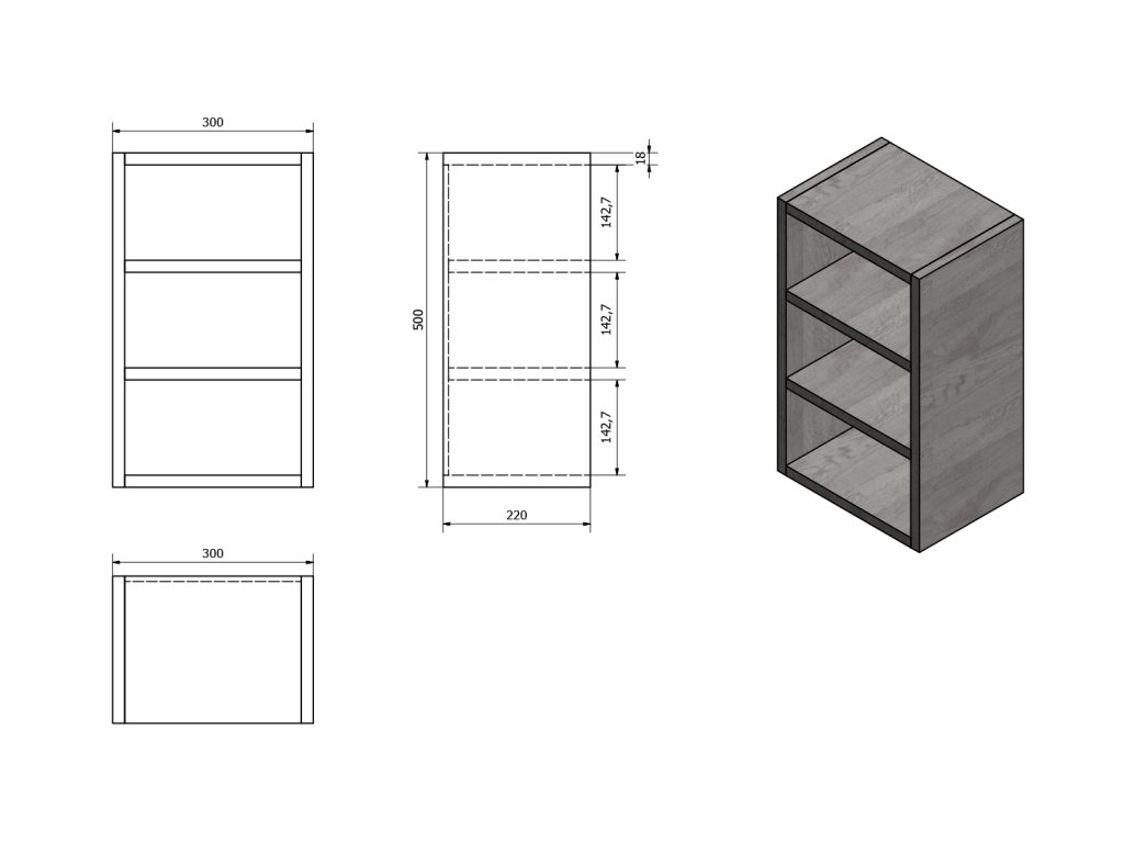 LATUS VI otevřená policová skříňka 30x50x22cm, bílá