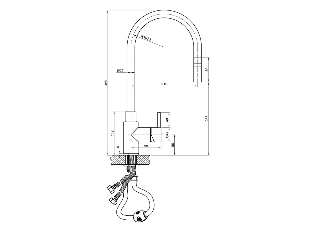SILI stojánková dřezová baterie, flexibilní ramínko, černá/chrom