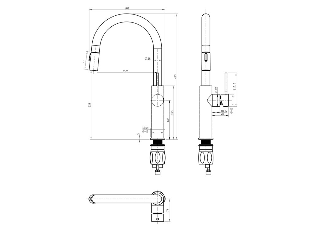 ATON stojánková dřezová baterie se sprškou, černá mat