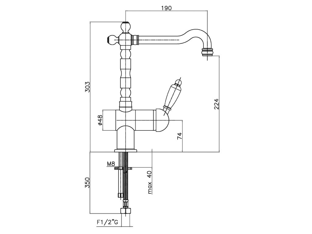 KIRKÉ BLACK stojánková dřezová baterie, černá páčka, chrom
