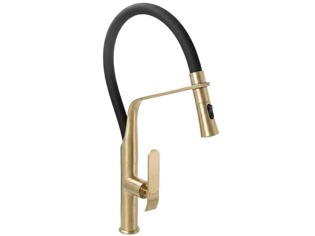 Kuchyňská baterie Rea Castor v černo-zlatém kartáčovaném provedení je základem funkční a moderní kuchyně – spojuje odvážnou estetiku s vysokou praktičností. Pevné tělo z mosazi je zárukou stability a dlouhé životnosti celé konstrukce.Výjimečná barevná kombinace – spojení matné černi s prvky v barvě kartáčovaného zlata dodává baterii jedinečný vzhled, který skvěle ladí s luxusními a moderními interiéry.Odolná PVD povrchová úprava – zlaté části jsou opatřeny pokročilou vrstvou PVD, která zajišťuje vysokou odolnost vůči nečistotám, poškrábání a zároveň usnadňuje čištění.Flexibilní a pohyblivý výtok – baterie s výškou 485 mm a dosahem 180 mm nabízí velkou volnost při manipulaci. Flexibilní konstrukce výtoku usnadňuje mytí nádobí nestandardních rozměrů i přesné oplachování každé části dřezu.Pohodlný přepínač proudu – na konci výtoku se nachází přepínač, který umožňuje okamžitě přizpůsobit proud vody aktuálním potřebám, například pro jemné oplachování zeleniny.Keramická kartuše – kvalitní keramická kartuše zaručuje dlouhodobou spolehlivost, těsnost a plynulou regulaci intenzity i teploty vody.Jednoduchá stojánková montáž – baterie se montuje přímo na pracovní desku nebo dřez a standardní připojení 3/8” zajišťuje plnou kompatibilitu s domácí instalací.Rea Castor černá/zlatá kartáčovaná je volbou pro ty, kteří hledají armaturu s charakterem. Kombinace mosazné konstrukce, flexibilního výtoku a moderního designu zjednodušuje každodenní práci v kuchyni a dodává interiéru profesionální a elegantní nádech.