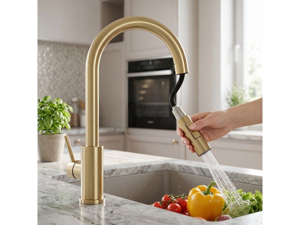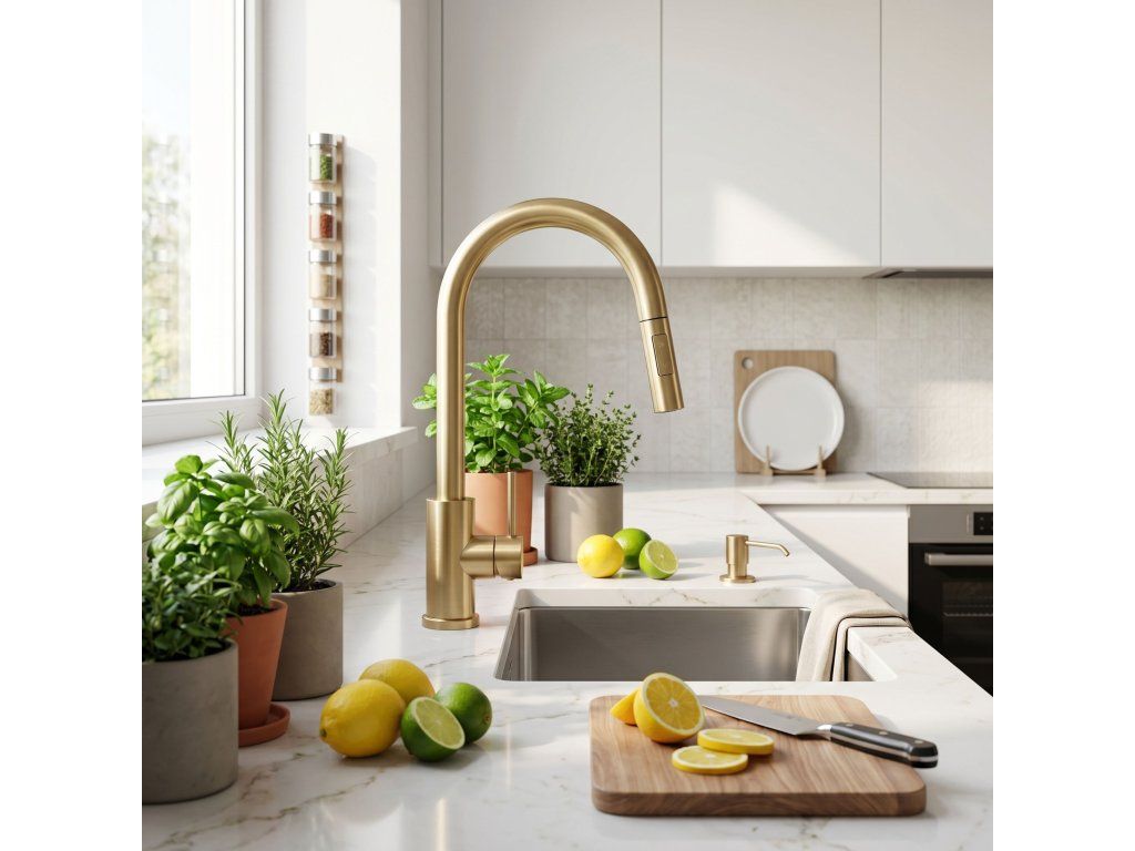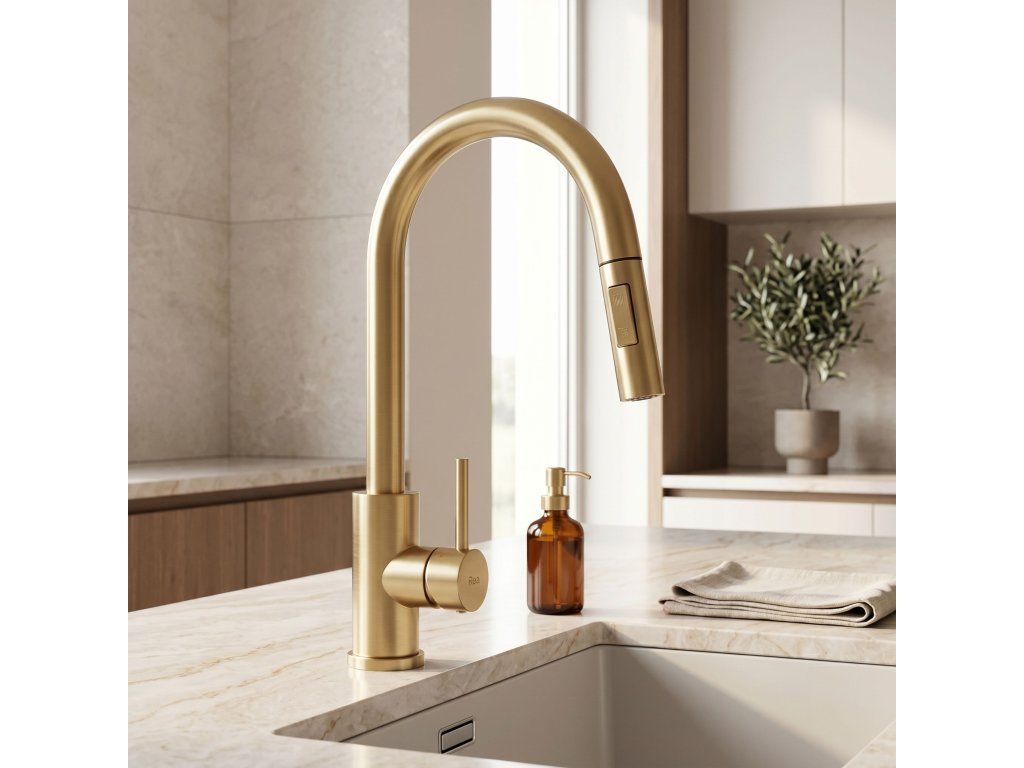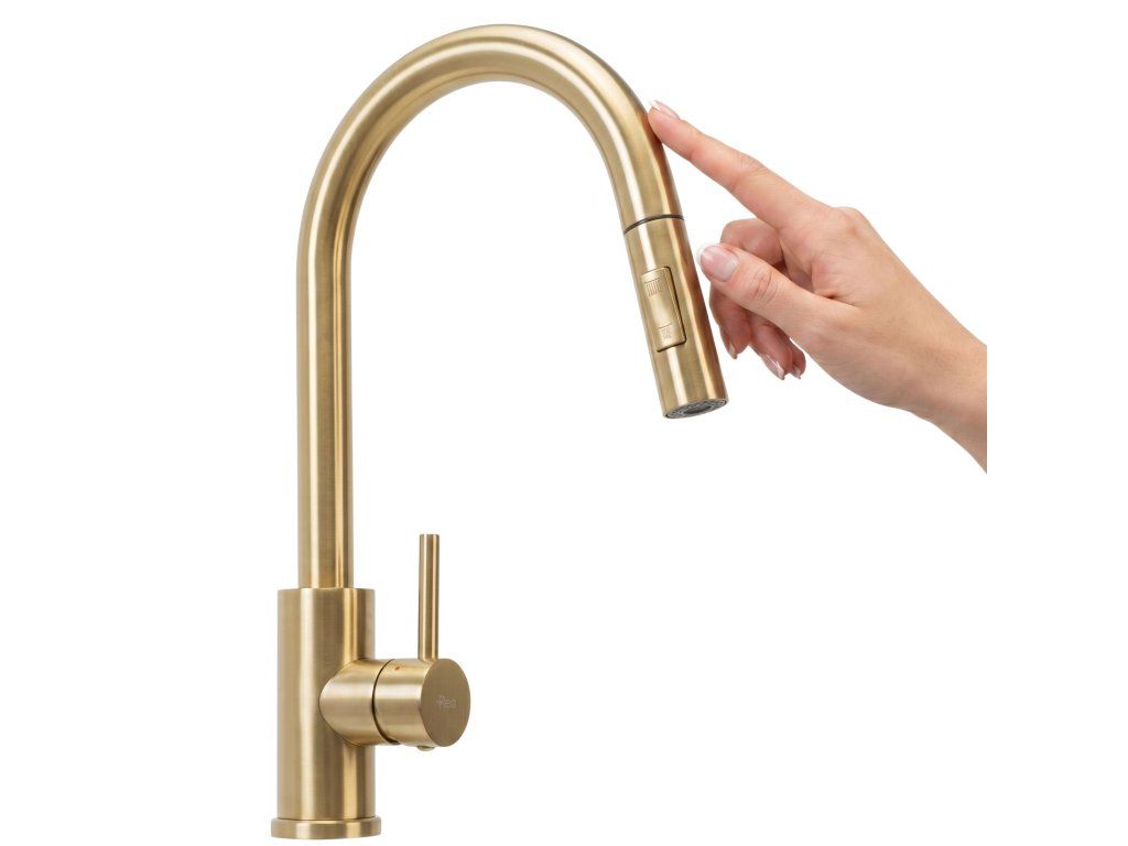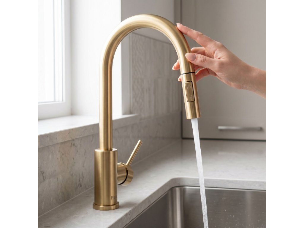 Spojte moderní design s funkčností díky kuchyňské baterii Rea Fresh Touch v elegantní povrchové úpravě Brushed Gold. Model je vybaven dotykovým systémem Touch, který umožňuje rychlé zapnutí a vypnutí vody dotykem výtoku – bez nutnosti použití rukou. Baterie má výsuvný výtok, který zvětšuje pracovní dosah a usnadňuje každodenní činnosti, jako je mytí nádobí nebo čištění dřezu. Díky dvoufunkční spršce můžete pohodlně měnit režim proudu vody podle aktuálních potřeb.Systém Touch (dotykový) – umožňuje rychlé zapnutí a vypnutí vody dotykem výtoku.Senzor na celém výtoku – funguje kdekoli, bez nutnosti zasáhnout konkrétní bod.Ovládání bez použití rukou – umožňuje udržovat větší hygienu při práci v kuchyni.Napájení 4 × AA baterie – není třeba připojovat baterii k elektrické síti.Výsuvný výtok – zvětšuje pracovní dosah a usnadňuje mytí nádobí a čištění dřezu.Dvoufunkční sprška – umožňuje rychlou změnu režimu proudu vody.Otočný výtok o 360° – zajišťuje volnost pohybu a pohodlí při používání.Jednopáková regulace – umožňuje přesně nastavit teplotu a tlak vody.Moderní kartáčovaný design – elegantní povrchová úprava Brushed Gold vhodná pro kuchyně v klasickém, moderním i glamour stylu. Povlak s technologií PVD je zárukou mnohonásobně vyšší odolnosti proti poškrábání, poškození a stálobarevnosti.Pevná konstrukce – zaručuje trvanlivost a odolnost vůči každodennímu používání.Pevné tělo a moderní konstrukce zajišťují odolnost a pohodlí při používání, zatímco napájení senzoru 4 bateriemi AA eliminuje potřebu připojení k elektrické síti. Je to ideální řešení pro moderní kuchyně, kde záleží na pohodlí, hygieně a rychlé obsluze.