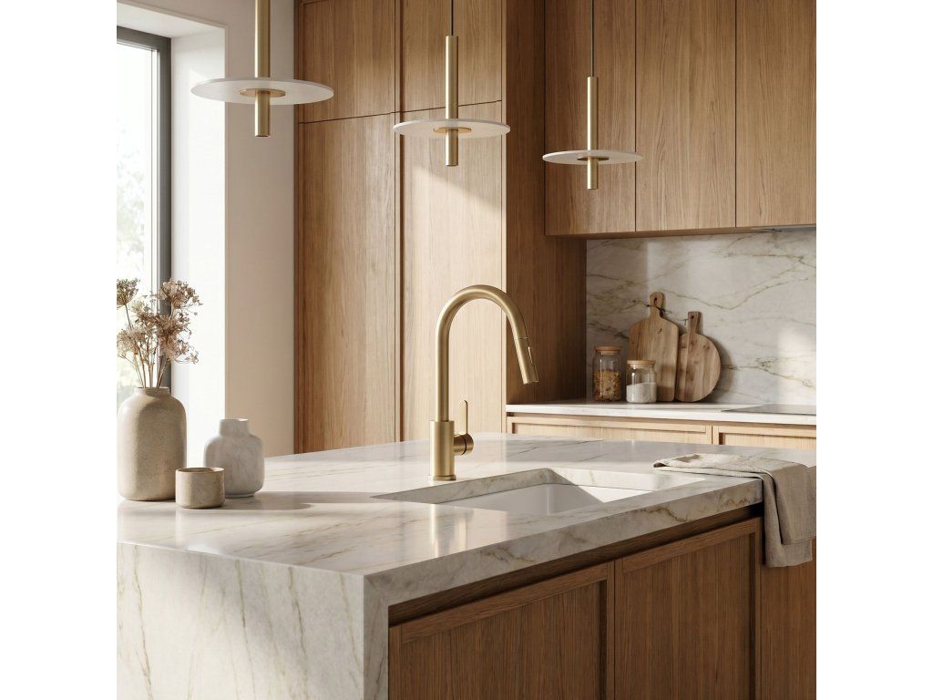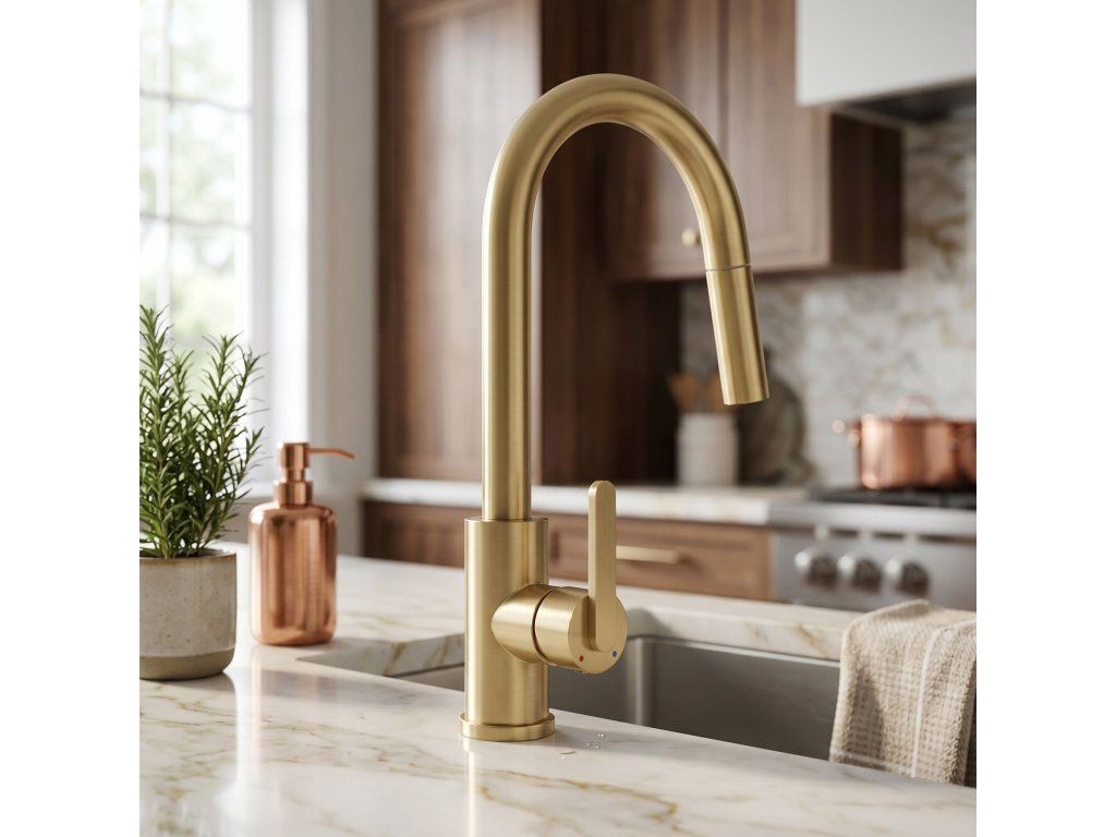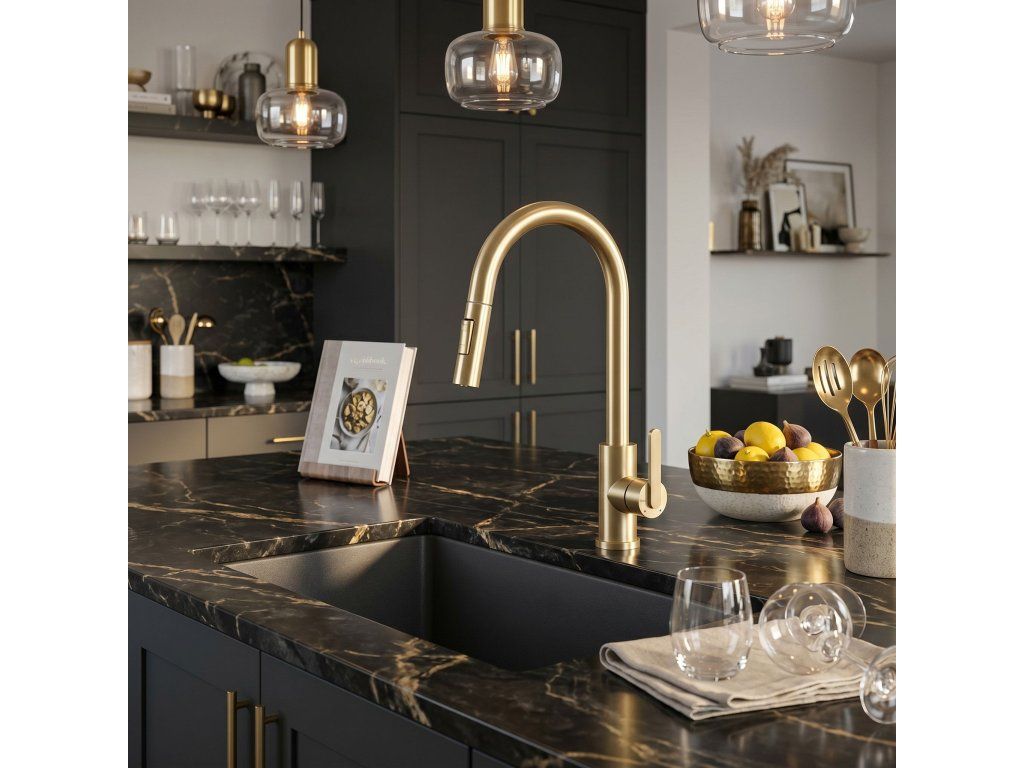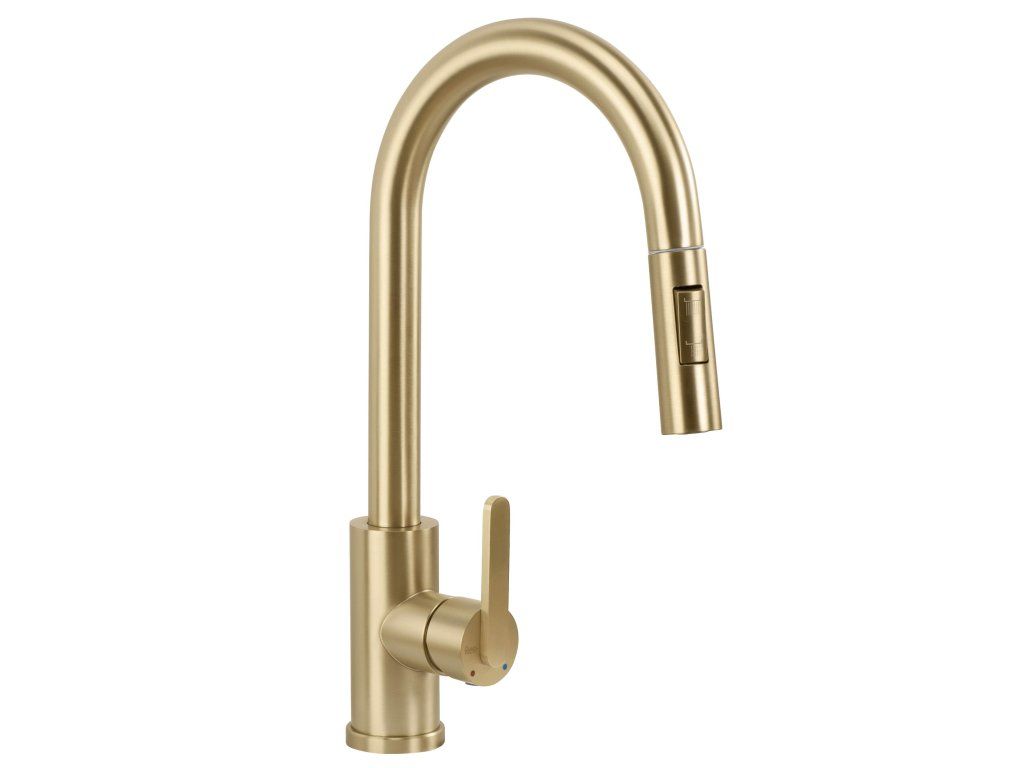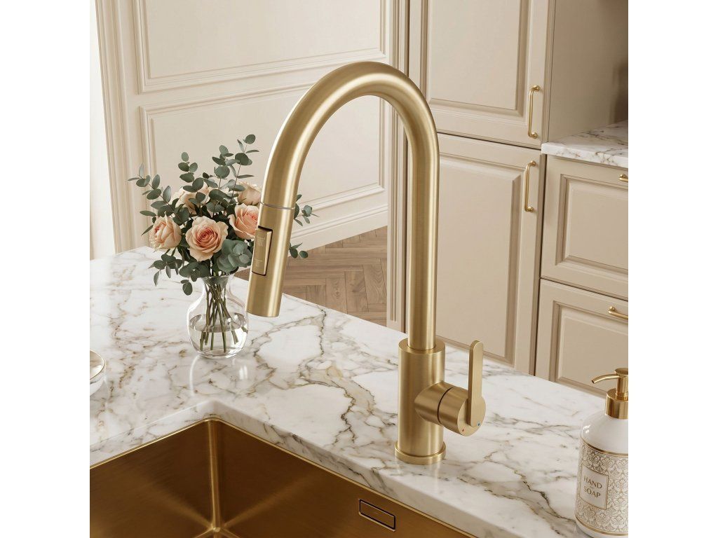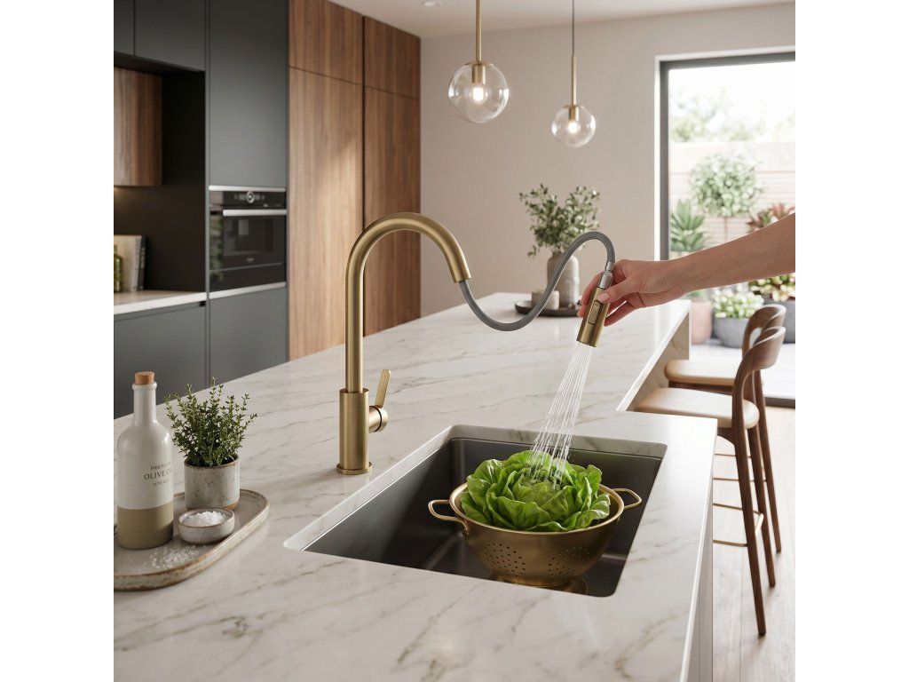 Kuchyňská baterie Ontario v barvě kartáčovaného zlata je spojením moderní ergonomie a výrazného designu. Navržena s ohledem na každodenní pohodlí, představuje elegantní a mimořádně praktický prvek vybavení současné kuchyně.Povrchová úprava Kartáčované zlato (PVD) – povlak nanesený technologií PVD se vyznačuje nejvyšší odolností a odolností proti poškrábání. Teplý odstín kartáčovaného zlata dodává interiéru prestiž a snadno se udržuje v čistotě.Vytahovací výtok – flexibilní hadice s vytahovací koncovkou značně zvyšuje pracovní dosah, což usnadňuje mytí vysokého nádobí a čištění dřezu.Dva režimy proudu – tlačítko na sprše umožňuje okamžitou změnu proudu vody.Otočný výtok – plně pohyblivé rameno usnadňuje každodenní kuchyňské práce, což je důležité zejména u dvoukomorových dřezů.Robustní mosazné tělo – vyrobeno z vysoce kvalitní mosazi, což zaručuje stabilitu, odolnost proti korozi a spolehlivost po dlouhá léta.Volbou baterie Ontario získáte funkční nástroj, který zefektivní vaše domácí povinnosti a vnese do kuchyně ušlechtilý zlatý akcent v moderním vydání.