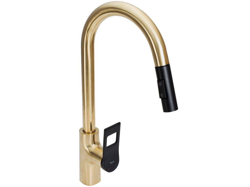 Základem každé kuchyně je vhodná kuchyňská dřezová baterie. Tato baterie ze série Rea Soul je vyrobena z vysoce kvalitní mosazi, díky čemu garantujeme odolnost a výdrž baterie. Povrchová úprava ve zlaté broušené barvě činí baterii odolnou vůči znečištění a viditelným otiskům prstů a černá barva dodává baterii dokonalý a nevšední vzhled, který bude skvěle ladit s dekorem ve Vaši kuchyni.