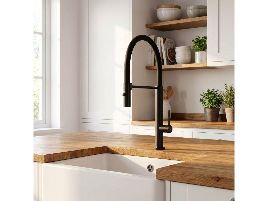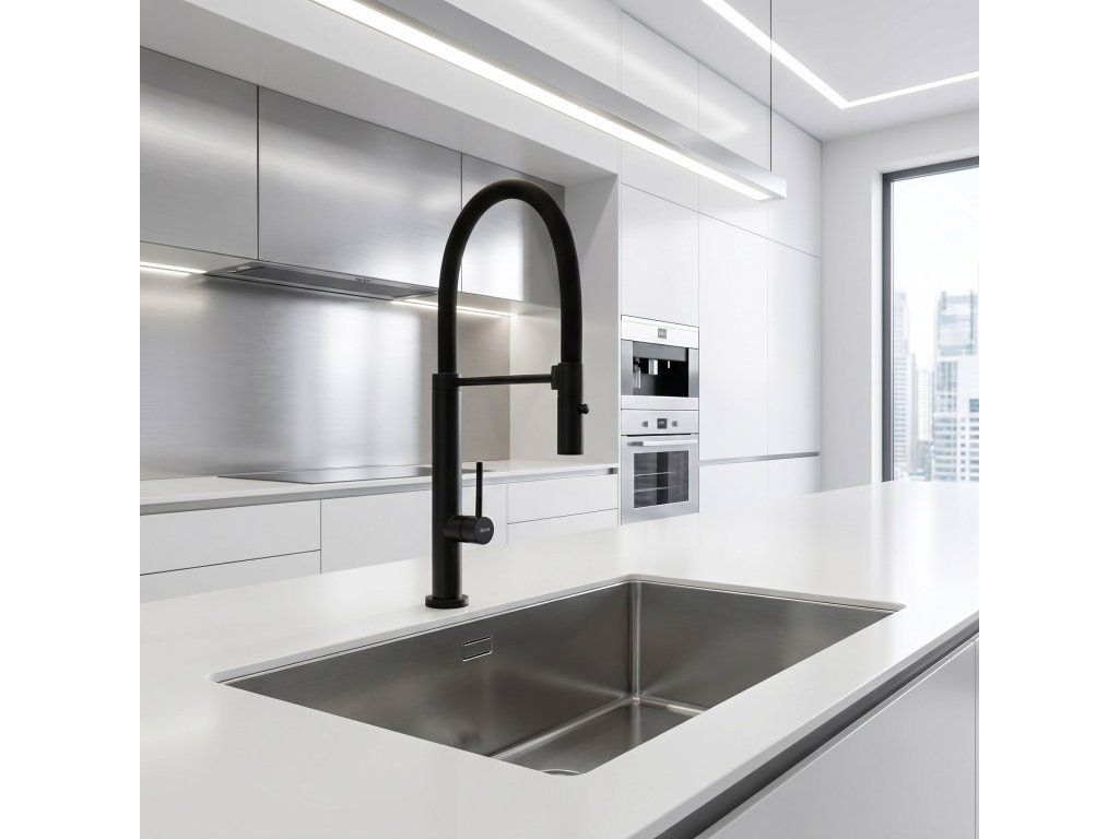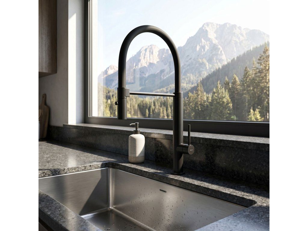 Kuchyňská baterie Rea Viera v provedení Černý mat je kvintesencí moderního stylu a nekompromisní funkčnosti. Její monolitická, tmavá silueta s flexibilním ramenem ideálně zapadá do nejnovějších interiérových trendů a tvoří dokonalý doplněk kuchyní v loftovém, industriálním i minimalistickém stylu. Je to model pro lidi, kteří oceňují výrazný design a profesionální technická řešení.Hluboký povrch Černý mat – sametově matná vrstwa dodává armatuře syrovou eleganci. Černá skvěle kontrastuje se světlými deskami nebo tvoří ucelenou kompozici s tmavým granitovým dřezem.Technologie práškového lakování – moderní metoda nanášení barvy zaručuje vysokou odolnost proti mechanickému poškození a odlupování, usnadňuje údržbu a dodává povrchu výjimečnou hladkost.Plná mobilita a dosah – ohebné, černé rameno s vysokou odolností umožňuje volné manévrování s proudem vody v rozsahu 360 stupňů. To umožňuje přesný přístup do každého koutu dřezu i pohodlné plnění velkých nádob.Dvoufunkční sprška – intuitivní tlačítko na hlavici umožňuje okamžitou změnu proudu: od provzdušněného, úsporného průtoku po silnou sprchu pro efektivní mytí.Solidní podpůrné rameno – horizontální držák stabilizuje výtok a zajišťuje jeho vždy ideální polohu a estetický vzhled pracovní zóny.Spolehlivá keramická kartuše – srdcem baterie je keramický modul, který zodpovídá za plynulou a přesnou regulaci tlaku a teploty vody.Mosazná konstrukce těla – vyrobeno z vysoce kvalitní mosazi, což zaručuje odolnost proti korozi, vysokému tlaku vody a dlouholetou životnost celé konstrukce.