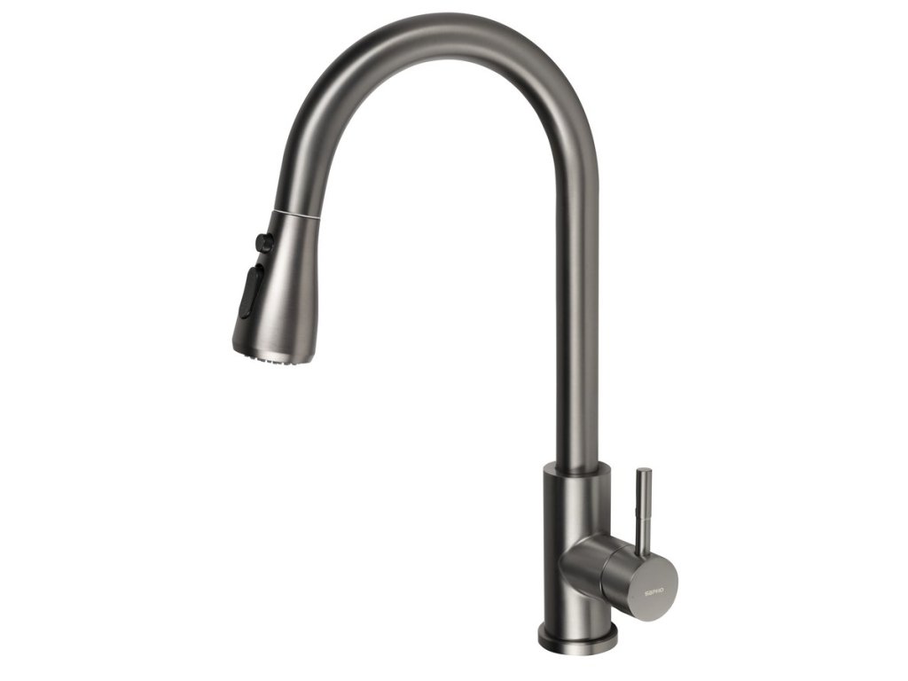 MIKELA stojánková dřezová baterie s výsuvnou sprškou, gun metal
