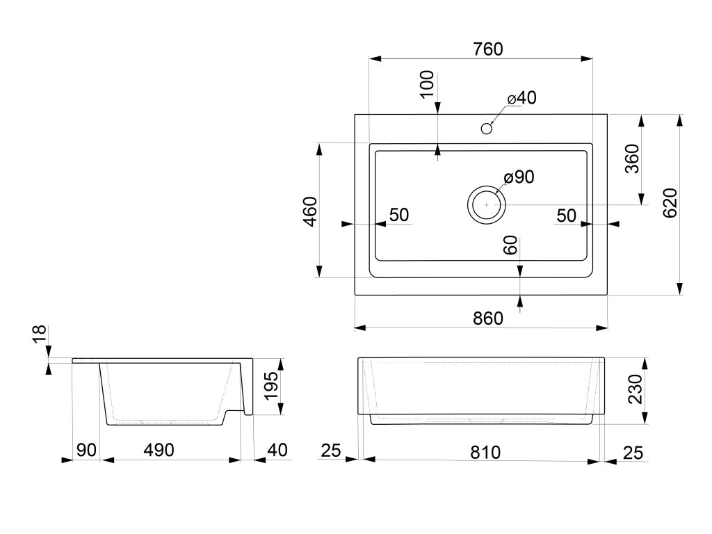 ARYA keramický dřez s otvorem pro baterii 86x62 cm, bílá