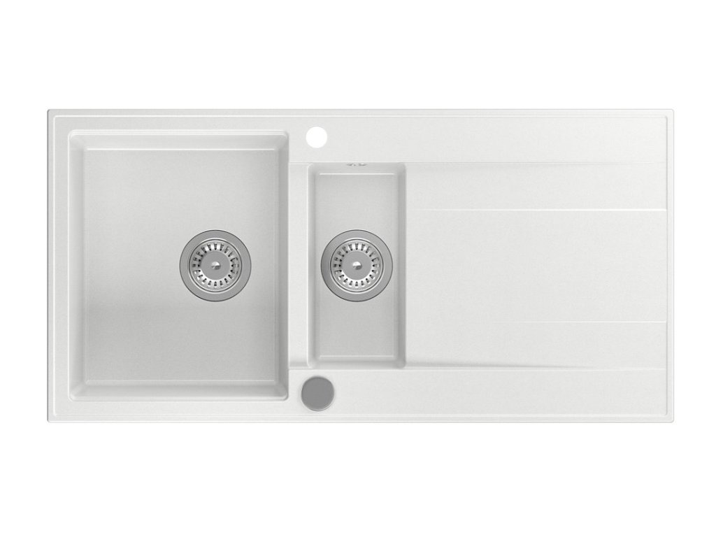 Granitový vestavný dřez s odkapem a vaničkou, 100x50cm, bílá