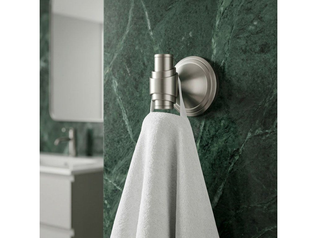 Minimalistický tvar s klasickým zakončením na konci zajišťuje pevné držení ručníků, županů nebo doplňků a zároveň dodává celku moderní charakter. Nástěnná montáž šetří místo a pomáhá udržovat pořádek v koupelně.