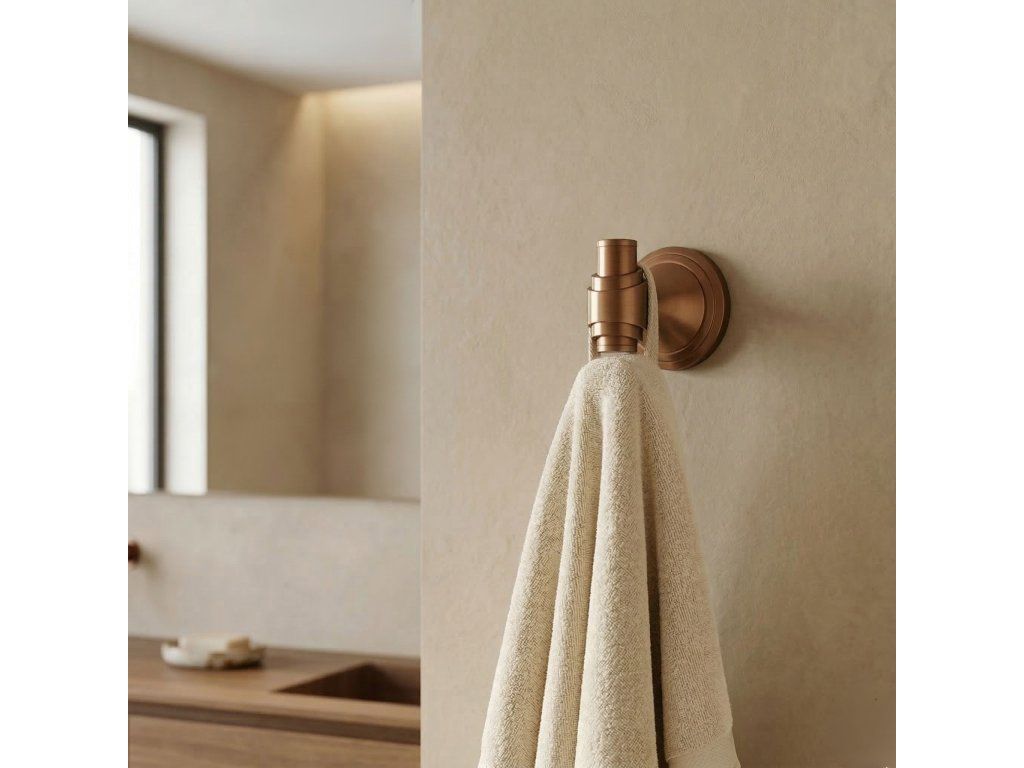 Praktický a elegantní koupelnový věšák v barvě kartáčované mědi je funkčním prvkem vybavení, který se hodí jak do moderních, tak i klasických interiérů. Vyroben je z vysoce kvalitní oceli, což zaručuje odolnost vůči vlhkosti, korozi a každodennímu používání.