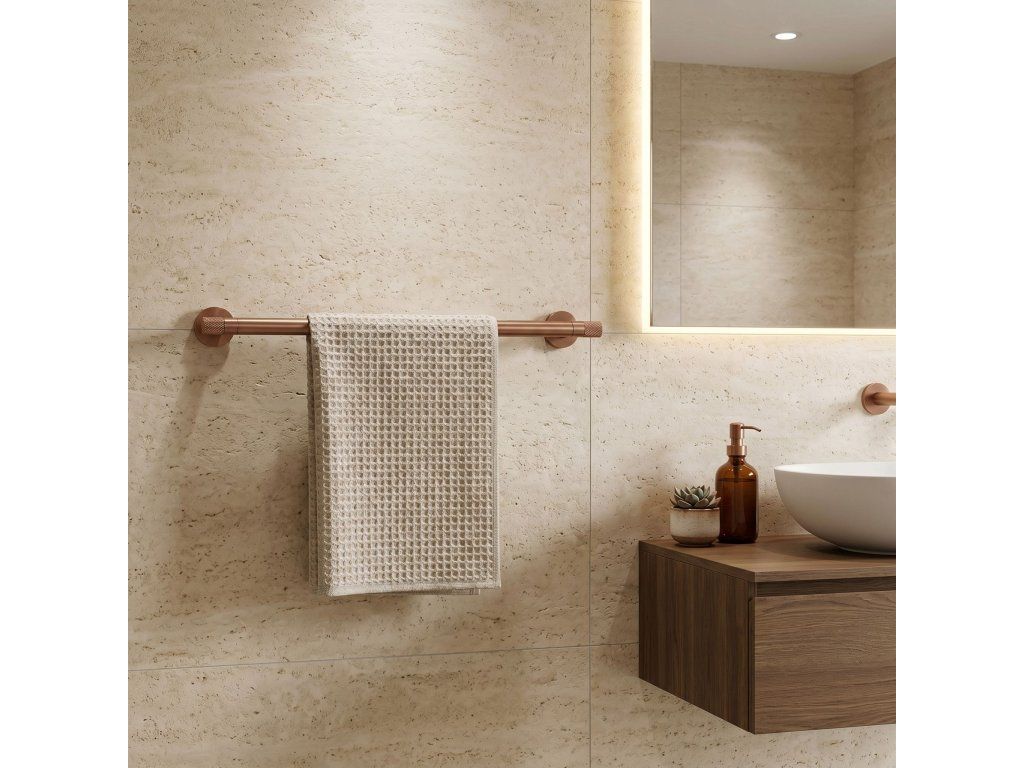 Jednoramenný věšák Ori v barvě Brushed Copper je funkční doplněk, který spojuje elegantní design s vysokou kvalitou zpracování. Díky svému jednoduchému tyčovému tvaru je ideální pro zavěšení ručníků, čímž pomáhá udržovat pořádek v každé moderní koupelně.Povrchová úprava Brushed Copper – matný povlak dodává věšáku moderní vzhled a zároveň je velmi praktický, protože účinně snižuje viditelnost skvrn od vody a otisků prstů.Pevná kovová konstrukce – zpracování z vysoce kvalitního kovu zaručuje odolnost proti mechanickému poškození a dlouholetou trvanlivost výrobku i při každodenní zátěži.Jednoramenná konstrukce – horizontální linie tyče umožňuje pohodlné rozložení ručníku, což zajišťuje adekvátní větrání a urychluje schnutí.Dvoubodová montáž na stěnu – použití pevného uchycení ve dvou bodech zaručuje plnou stabilitu věšáku.Kompletní kolekce Ori – model patří do široké řady koupelnových doplňků, což umožňuje vytvořit vizuálně ucelenou a plně funkční sadu vybavení.Výběrem věšáku z kolekce Ori investujete do detailu, který dělá rozdíl. Díky rýhovaným povrchovým úpravám a pevné konstrukci se jedná o produkt pro lidi hledající doplňky s charakterem, které vydrží roky intenzivního používání.