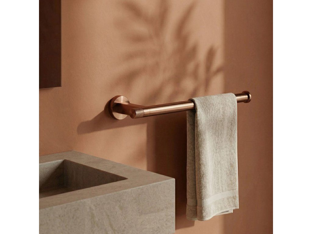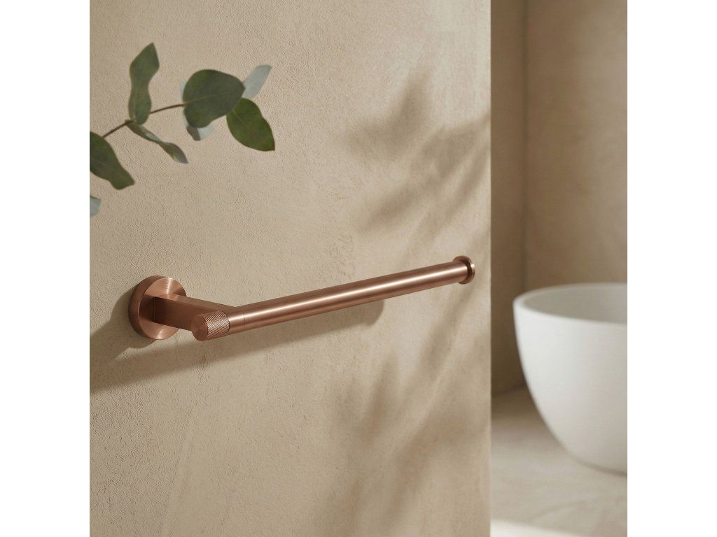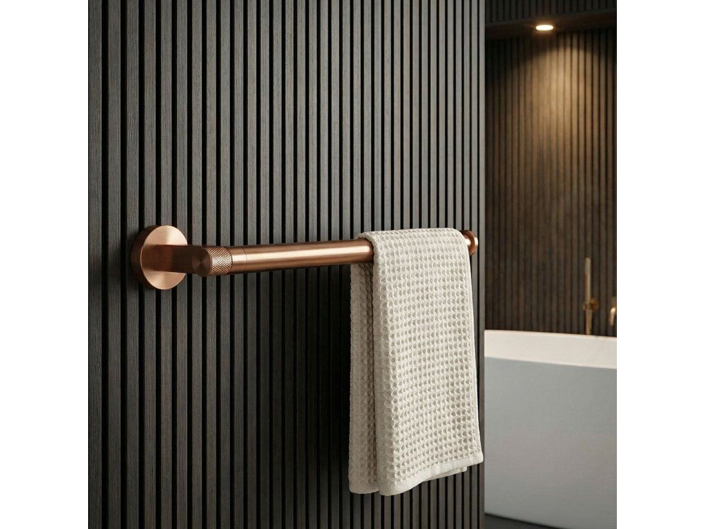 Zajistěte si pořádek a elegantní vzhled své koupelny s věšákem na ručníky Ori v barvě kartáčované mědi. Tento stylový a mimořádně funkční doplněk dokonale zapadá do moderních aranžmá a kombinuje jednoduchou formu s decentním šperkovým detailem.Povrchová úprava kartáčovaná měď – hluboký, teplý odstín mědi dodává interiéru elegantní a neotřelý charakter. Kartáčovaný povrch usnadňuje udržování čistoty a účinně maskuje drobné stopy používání.Ozdobné vroubkování – rameno věšáku bylo v místě spoje obohaceno o precizní, vroubkovanou strukturu. Tento rýhovaný detail představuje jedinečnou ozdobu, která přitahuje pohled a zdůrazňuje vysokou kvalitu zpracování.Robustní kovová konstrukce – vyrobení z vysoce kvalitního kovu zaručuje plnou stabilitu, nosnost a odolnost proti vlhkosti v koupelně.Pevná montáž na stěnu – věšák se upevňuje na vruty, což zajišťuje maximální bezpečnost i u těžkých, mokrých ručníků. Skrytý systém upevnění umožňuje zachovat dokonalou estetiku.Kompletní kolekce – v naší nabídce najdete i další doplňky ze série Ori, díky čemuž můžete vytvořit ucelené a harmonické uspořádání celé koupelny.Výběrem věšáku na ručníky Ori kartáčovaná měď volíte ideální spojení moderního designu s napolehlivou funkčností.