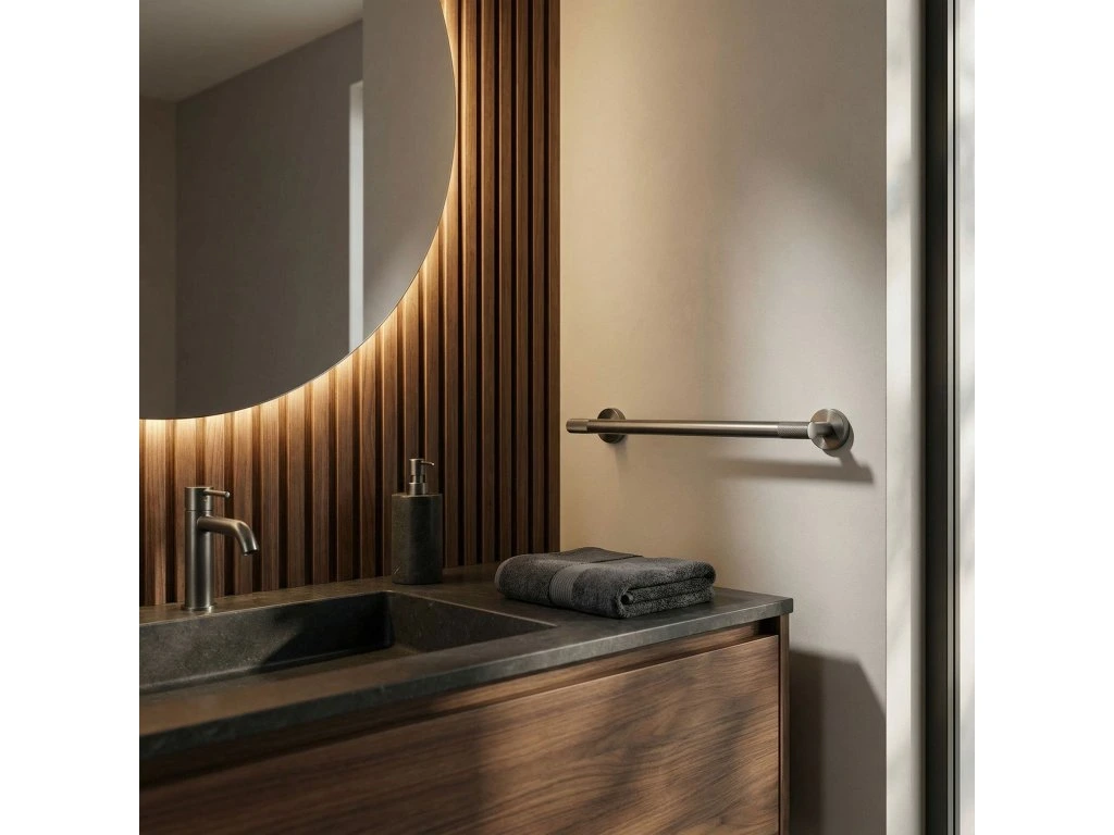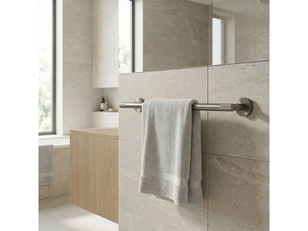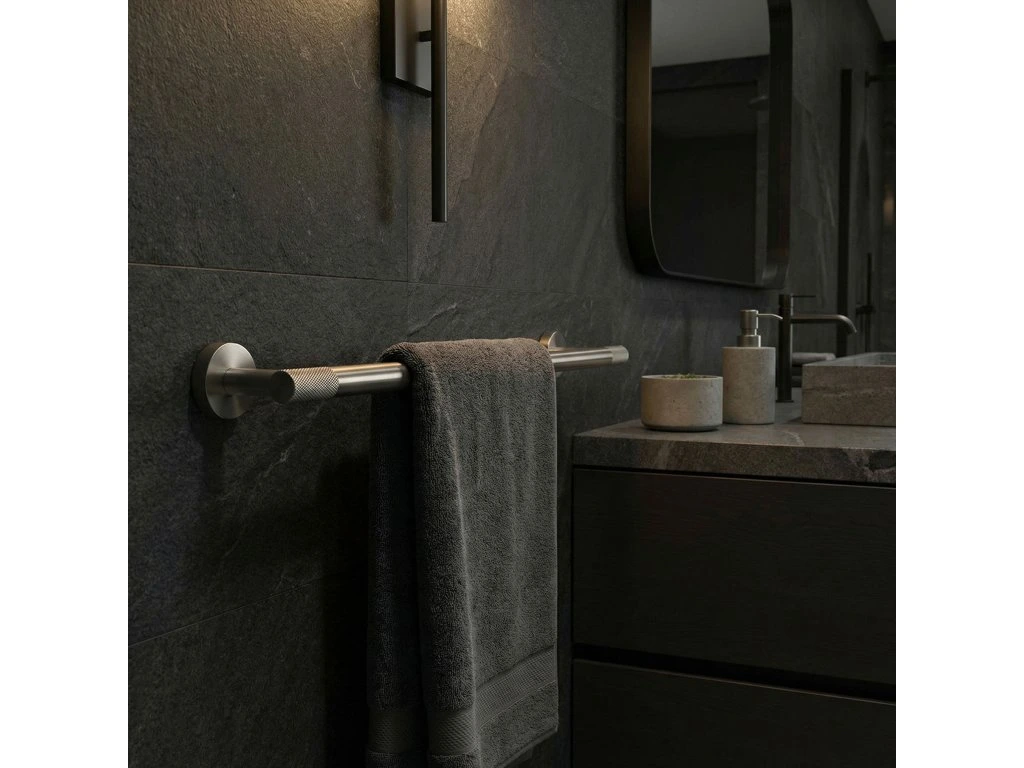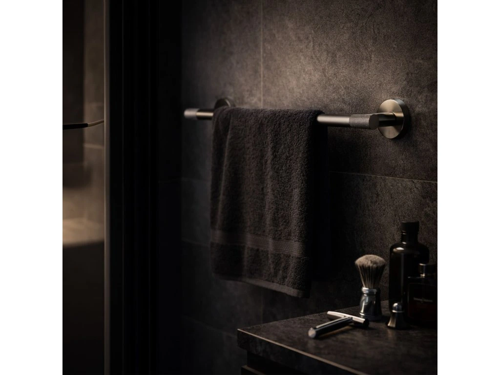 Zajistěte si dokonalý pořádek a minimalistický styl ve své koupelně díky věšáku na ručníky Modern 60 cm. Jeho univerzální povrchová úprava v barvě titanu dokonale zapadá do moderních trendů a spojuje eleganci s praktickým využitím. Vyroben z vysoce kvalitních materiálů, zajišťuje odolnost a plnou odolnost proti vlhkosti, což zaručuje spolehlivost na dlouhá léta.Vysoce kvalitní kov – zaručuje odolnost proti korozi a každodennímu používání ve vlhkém koupelnovém prostředí.Elegantní titanová povrchová úprava – dodává interiéru syrový, luxusní charakter a dokonale ladí s moderní podomítkovou armaturou.Šířka 60 cm – optimální délka umožňující volné zavěšení a rychlé schnutí osušek.Možnost zkrácení trubky – umožňuje ideální přizpůsobení rozměru věšáku dostupnému prostoru ve Vaší koupelně.Vroubkované zdobení – unikátní textura na koncích úchytů dodává moderní, industriální šmrnc a odlišuje produkt od klasických řešení.Solidní montáž přišroubováním – zajišťuje maximální stabilitu a jistotu upevnění i při větším zatížení.Věšák na ručníky Modern 60 cm je vynikající volbou pro osoby oceňující harmonické spojení estetiky a funkčnosti. Díky jednoduché, a přesto sofistikované linii se tento produkt stává decentní ozdobou každé koupelnové zóny. Výběrem tohoto řešení získáváte jistotu, že Vaše ručníky budou vždy na svém místě, což koupelně dodá třídu a moderní titanový lesk.
