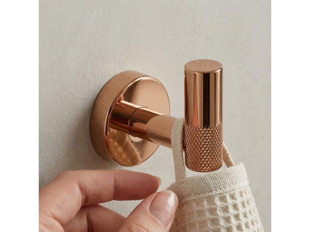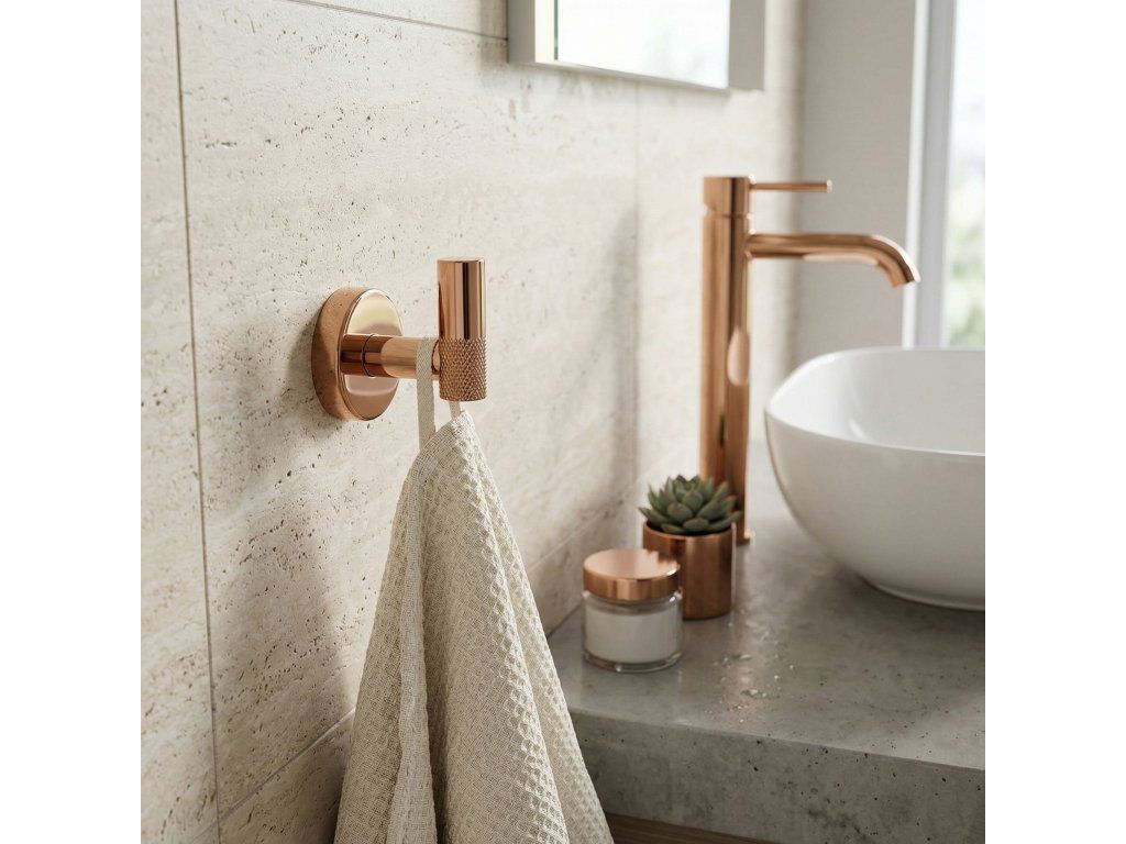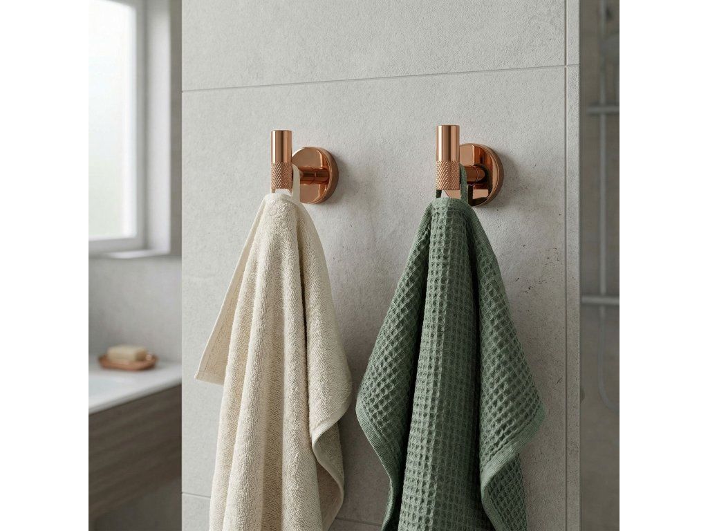 Koupelnový věšák Modern je ideální volbou pro lidi, kteří oceňují harmonii designu a užitečnosti. Perfektní měděná povrchová úprava dělá z tohoto drobného akcentu stylovou ozdobu každé koupelnové zóny. Díky solidní konstrukci a důrazu na detaily získáváte jistotu komfortu a spolehlivosti každý den.