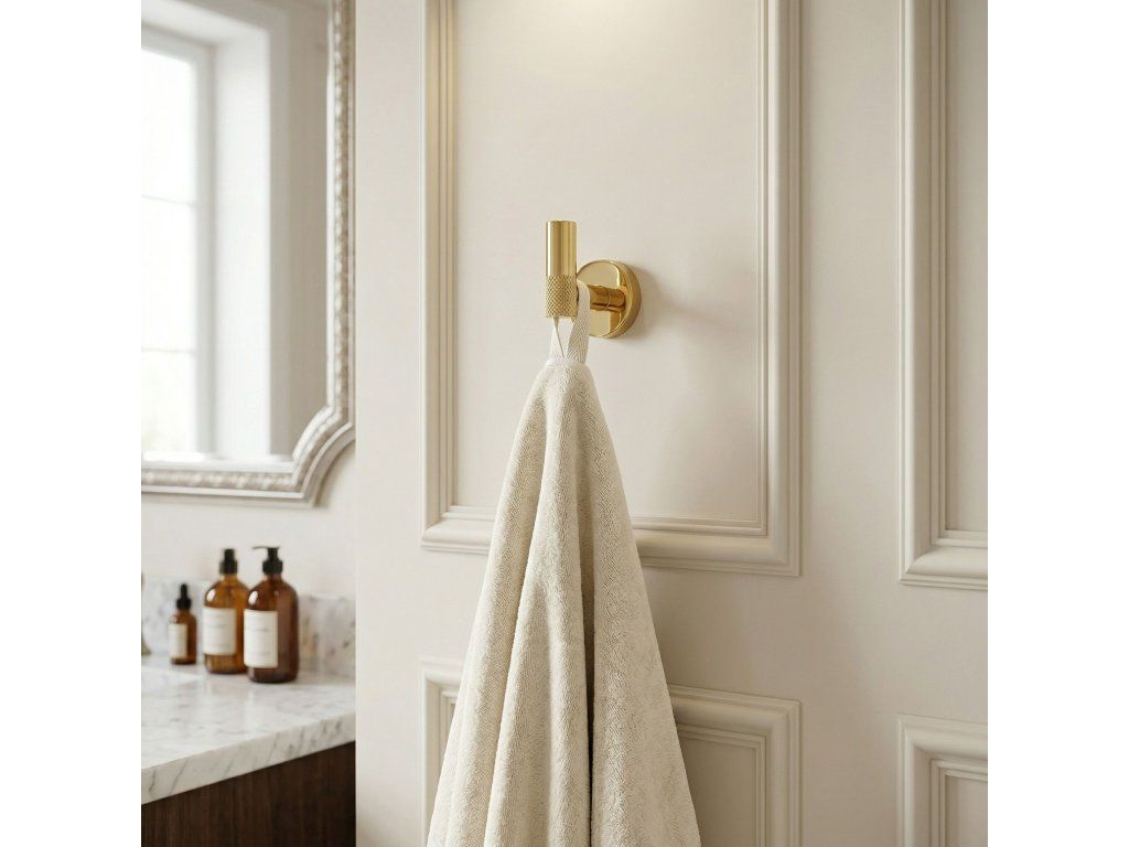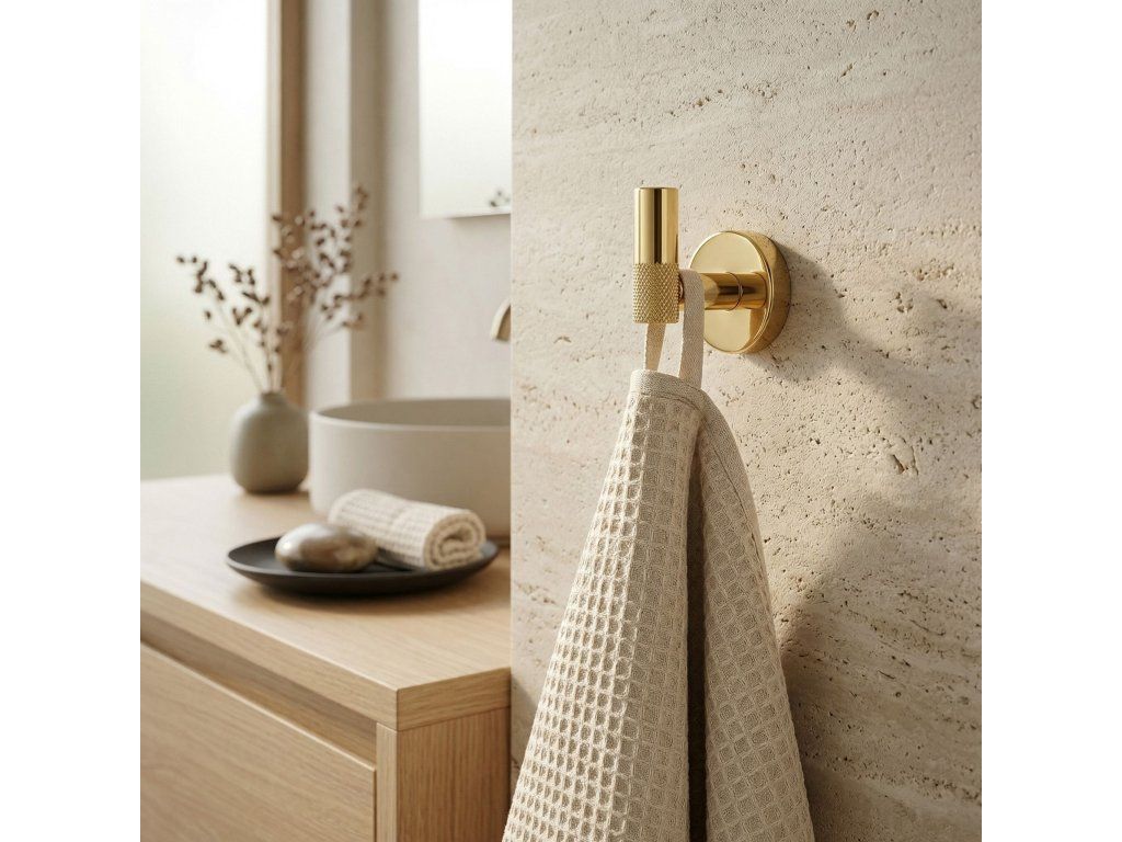 Praktický a elegantní koupelnový věšák Modern ve zlaté barvě je funkční prvek vybavení, který se osvědčí v moderních i klasických aranžmá interiérů. Je vyroben kompletně z vysoce kvalitního kovu, což zaručuje plnou odolnost proti vlhkosti, korozi a každodennímu používání po léta.Vysoce kvalitní kov – zajišťuje spolehlivost a odolnost konstrukce v náročném koupelnovém prostředí.Elegantní zlatá povrchová úprava – dodává interiéru luxusní charakter a dokonale ladí s moderní armaturou a doplňky.Minimalistická forma s rýhováním – unikátní textura na konci věšáku zabraňuje sklouzávání ručníků nebo županů a dodává celku moderní šmrnc.Solidní montáž na stěnu – umožňuje ušetřit místo, udržet v koupelně pořádek a zajišťuje pevné uchycenie i pod zátěží.Koupelnový věšák Modern je ideální volbou pro osoby oceňující harmonii designu a užitečnosti. Perfektní povrchová úprava ve zlaté barvě dělá z tohoto drobného akcentu stylovou ozdobu každé koupelnové zóny. Díky solidní konstrukci a důrazu na detaily získáváte jistotu komfortu a spolehlivosti každý den.