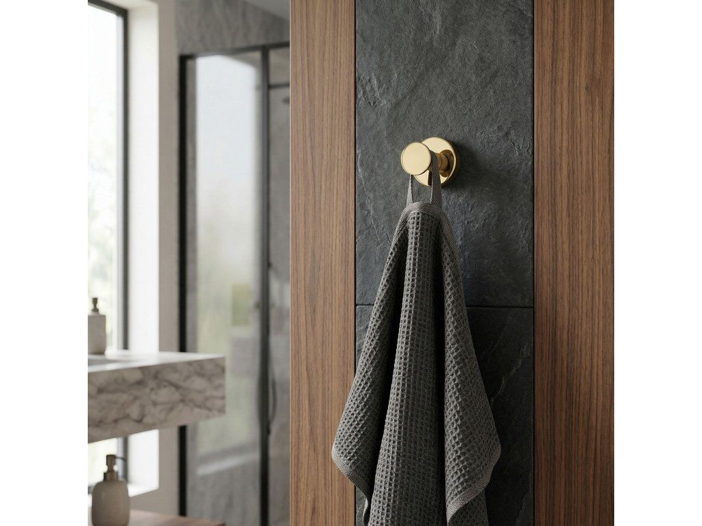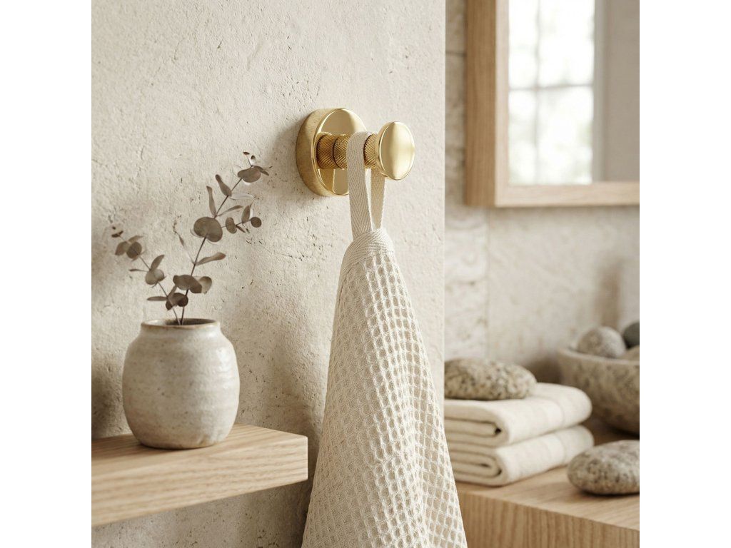 Praktický a elegantní koupelnový věšák Modern ve zlaté barvě je funkční prvek vybavení, který se osvědčí v moderních i klasických aranžmá interiérů. Je vyroben kompletně z vysoce kvalitního kovu, což zaručuje plnou odolność proti vlhkosti, korozi a každodennímu používání po léta.Vysoce kvalitní kov – zajišťuje spolehlivost a odolnost konstrukce v náročném koupelnovém prostředí.Elegantní zlatá povrchová úprava – dodává interiéru luxusní charakter a dokonale ladí s moderní armaturou a doplňky.Minimalistická forma s rýhováním – unikátní textura na dříku věšáku zabraňuje sklouzávání ručníků nebo županů a dodává celku moderní šmrnc.Solidní montáž na stěnu – umožňuje ušetřit místo, udržet v koupelně pořádek a zajišťuje pevné uchycení i pod zátěží.Koupelnový věšák Modern je ideální volbou pro osoby oceňující harmonii designu a užitečnosti. Perfektní povrchová úprava ve zlaté barvě dělá z tohoto drobného akcentu stylovou ozdobu každé koupelnové zóny. Díky solidní konstrukci a důrazu na detaily získáváte jistotu komfortu a spolehlivosti každý den.