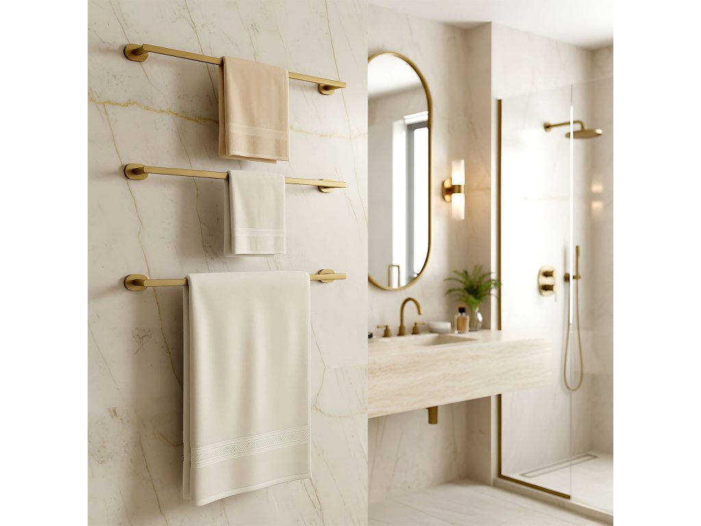 Oceňte eleganci a luxus ve své koupelně s naším držákem na ručníky Rea Til v exkluzivním provedení kartáčované zlato. Dokonalá kombinace rafinovaného glamour stylu a funkčnosti, která zaujme každého uživatele. Tento koupelnový doplněk nejen zvýrazní prestižní design vaší koupelny, ale také zajistí spolehlivost a dlouhou životnost.Povrchová úprava kartáčované zlato – ušlechtilá barva a jemná struktura dodávají interiéru třídu a nadčasovou eleganci.Moderní design – minimalistický, ale výrazný tvar, který dokonale zapadá do glamour i moderních trendů.Skryté montážní prvky – zaručují estetickou instalaci bez viditelných šroubů, čímž podtrhují čistou linii produktu.Optimální délka – poskytuje dostatek prostoru pro pohodlné zavěšení velkého ručníku.Držák na ručníky Rea Til je ideální volbou pro ty, kteří si cení luxusních detailů a pohodlí. Dokonale propracovaný do posledního detailu a vyrobený s důrazem na kvalitu, bude skutečnou ozdobou vaší koupelny. Díky pevné konstrukci a snadné montáži si můžete být jisti, že tento doplněk vám bude sloužit mnoho let.