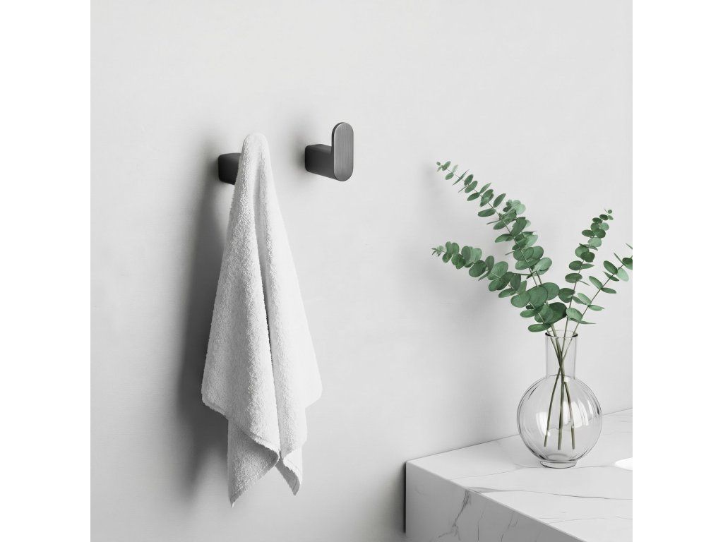 Vyrobené z vysoce kvalitního kovu, doplňky jsou pevné, odolné proti vlhkosti a mechanickému poškození. Díky montáži na šrouby zajišťují stabilitu a bezpečné uchycení i při častém používání. Matná černá povrchová úprava dodává elegantní vzhled a skvěle ladí s moderními koupelnami v industriálním nebo minimalistickém stylu.