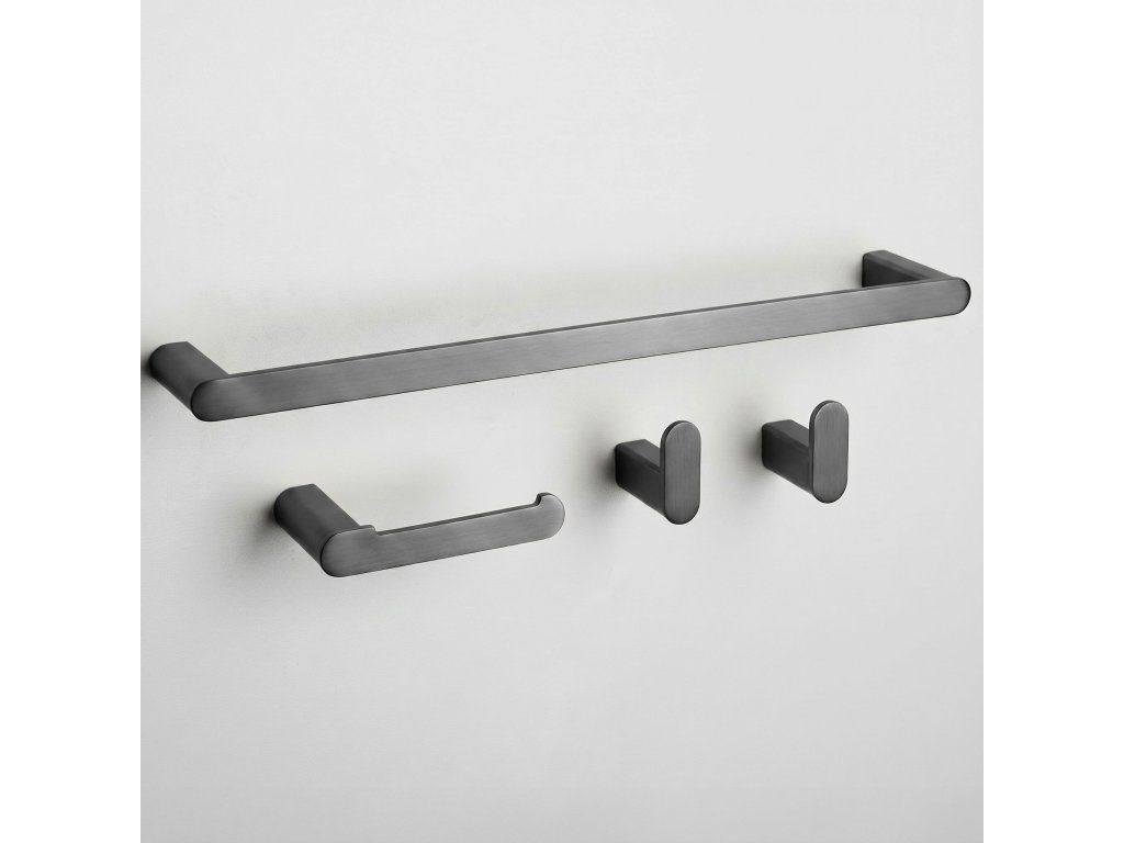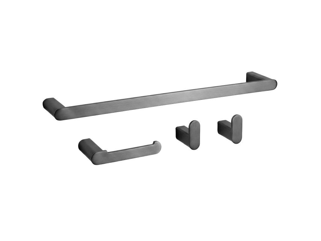 Sada koupelnových doplňků Rio je dokonalým spojením odolnosti, funkčnosti a elegantního designu. Součástí sady je podlouhý věšák na ručník, držák na toaletní papír a dva háčky, které tvoří jednotný a estetický celek do každé moderní koupelny.