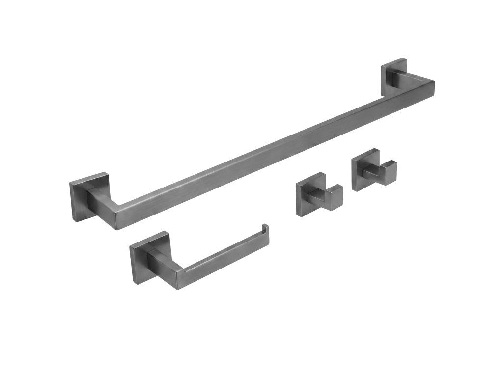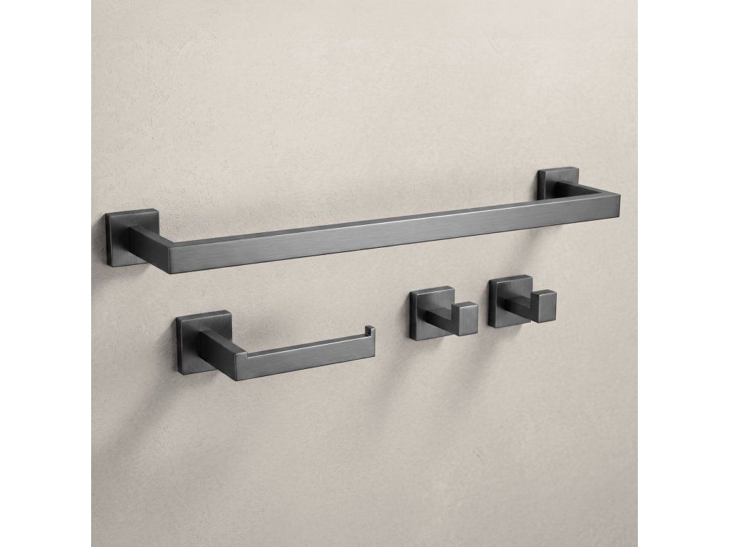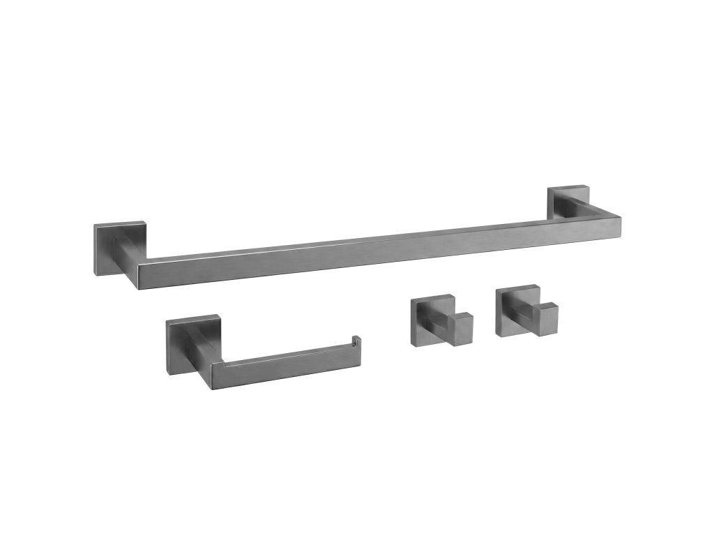 Sada koupelnových doplňků Rio je elegantní a funkční řešení, které se skvěle hodí do každé moderní koupelny. Součástí sady je držák na ručník, držák na toaletní papír a dva praktické háčky, které tvoří ucelený a stylový komplet pro každodenní použití.