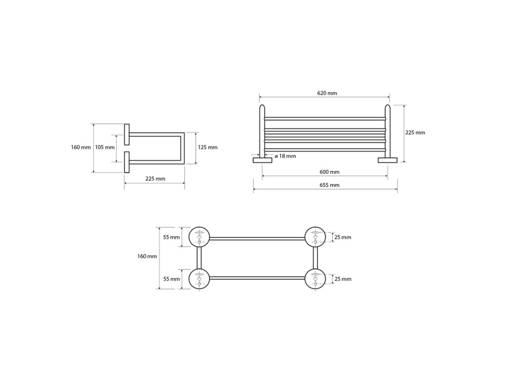 X-ROUND polička na ručníky dvojitá s hrazdou 600x160x225mm, chrom