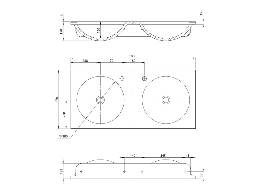 JUNO dvojumyvadlo, litý mramor, 100x47cm, bílá
