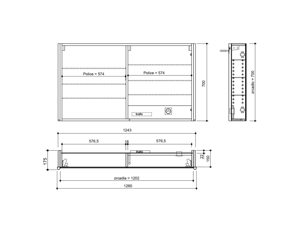 ALIX galerka s LED osvětlením, 2x dvířka, 126x70x17,5cm, dub stříbrný
