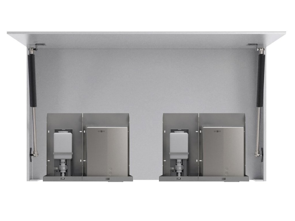 BASIC zrcadlová skříňka 120cm se dvěma automatickými dávkovači mýdla a se dvěma senzorovými osoušeči rukou