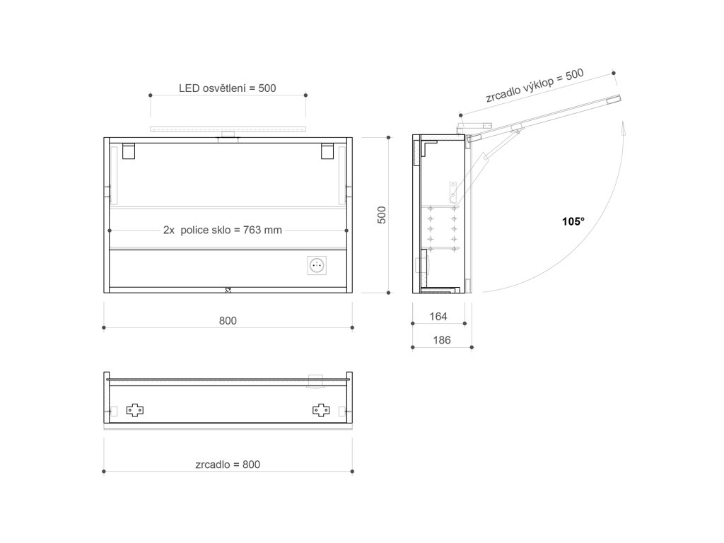 CLOE galerka s LED osvětlením 80x50x18cm, dub stříbrný