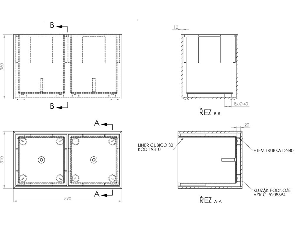 Obdélníkový květináč: délka 30 cm, šířka 90 cm, výška 30 cm