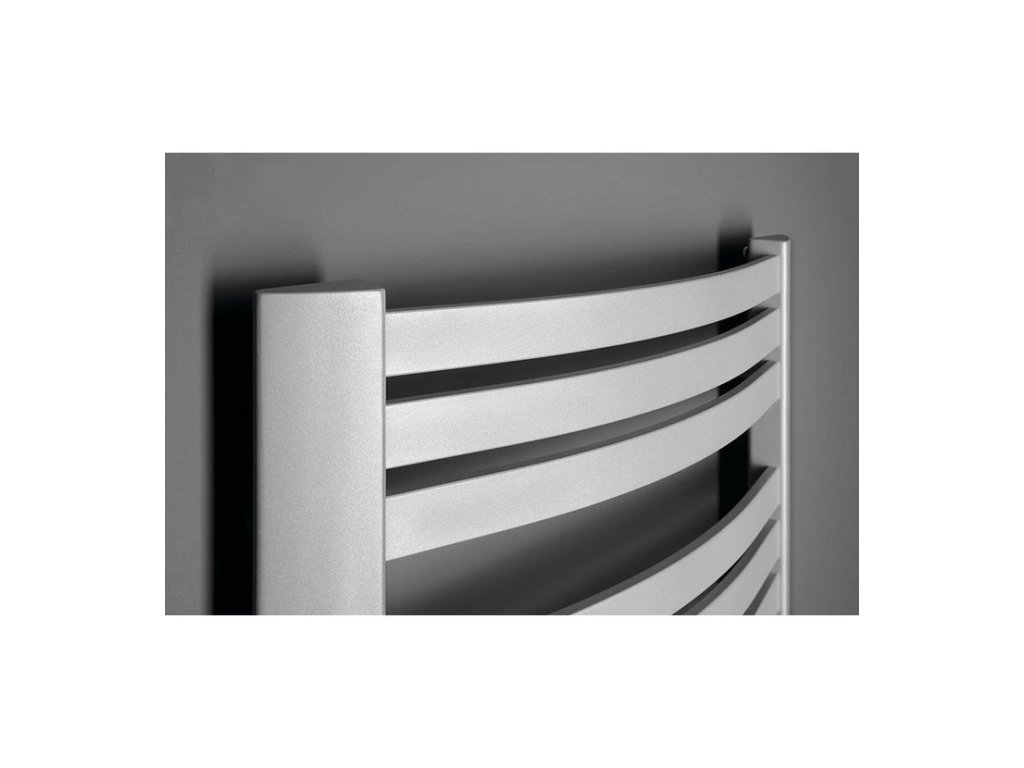 Dekorativní koupelnový radiátor s jemně prohnutými plochými trubkami s možností kombinace ústředního a elektrického vytápění.