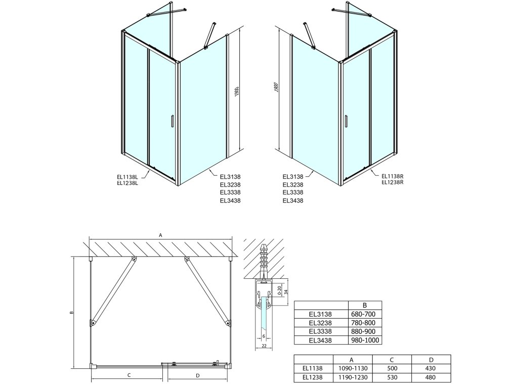 EASY třístěnný sprchový kout 1200x800mm, L/P varianta, sklo Brick