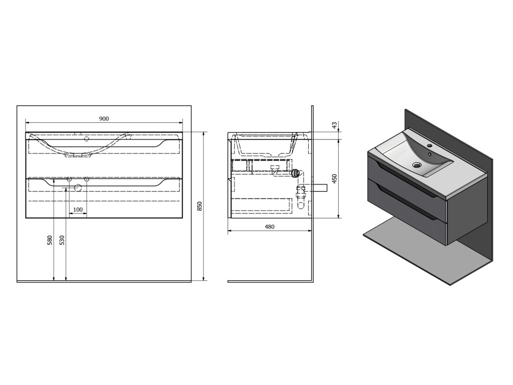 Koupelnový set WAVE 30+90, levá, bílá/dub collingwood