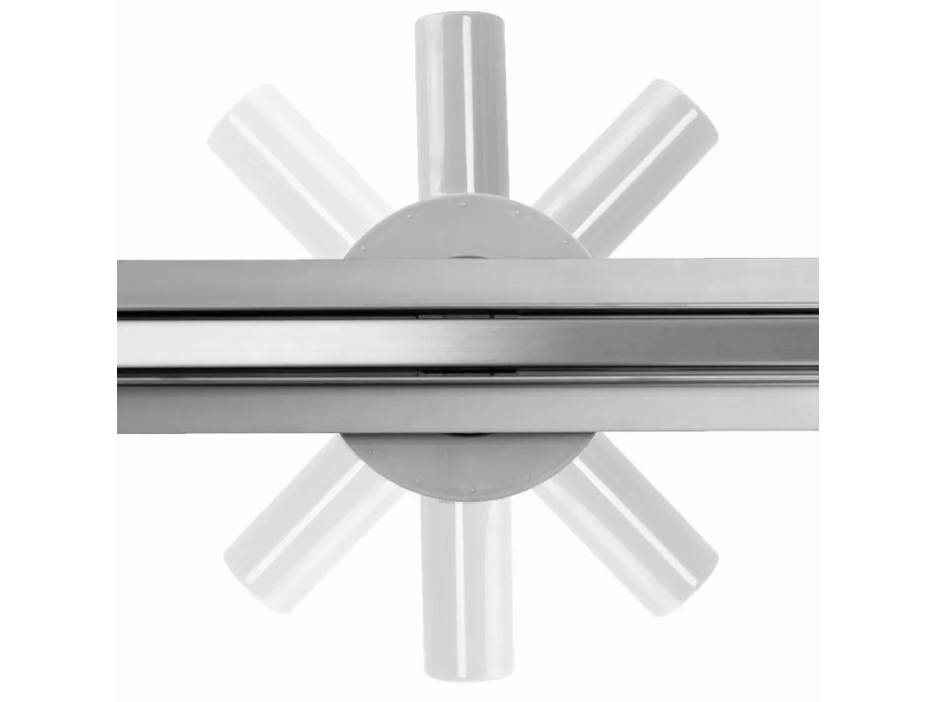 Odtokový žlab je celý vyroben z kyselinovzdorné nerezové oceli Aisi 304. Je vybaven řadou inovativních technologií, které usnadňují montáž a každodenní používání. V odtoku je použit dvojitý filtrační systém, který dokonale zabraňuje vnikání nečistot a předmětů, které mohou blokovat odtok vody do kanalizace. Výhodou tohoto systému je snadné čištění. Sada obsahuje: nohy, sifon, Dry-Fix manžetu, košík, uživatelskou příručku a háček na výměnu krytu žlabu.