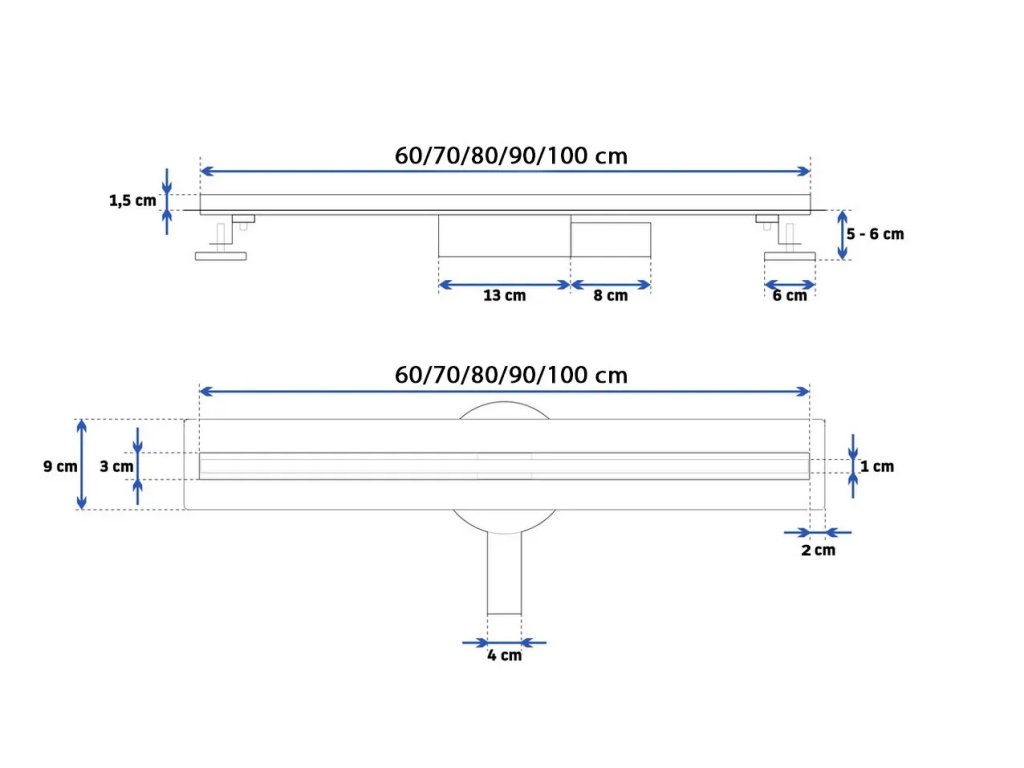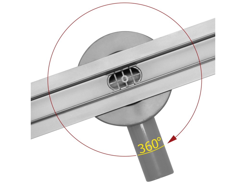 Odtokový žlab je celý vyroben z kyselinovzdorné nerezové oceli Aisi 304. Je vybaven řadou inovativních technologií, které usnadňují montáž a každodenní používání. V odtoku je použit dvojitý filtrační systém, který dokonale zabraňuje vnikání nečistot a předmětů, které mohou blokovat odtok vody do kanalizace. Výhodou tohoto systému je snadné čištění. Sada obsahuje: nohy, sifon, Dry-Fix manžetu, košík, uživatelskou příručku a háček na výměnu krytu žlabu.